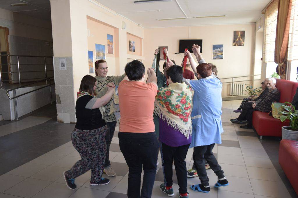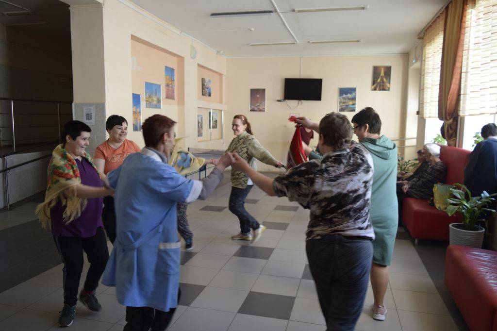 Ребята из психоневрологического отделения с удовольствием поучаствовали в хороводе. Остальные поддерживали их аплодисментами.