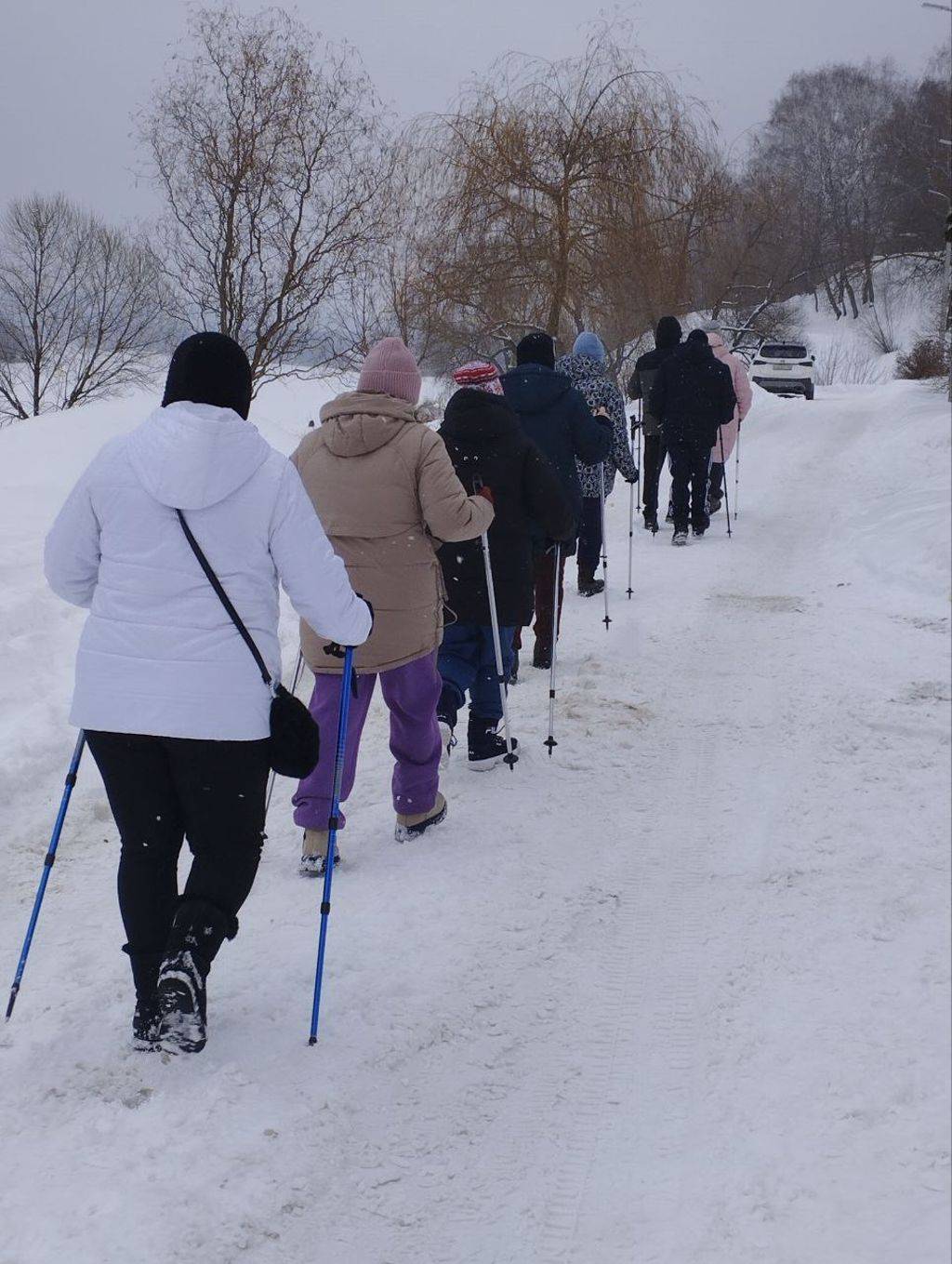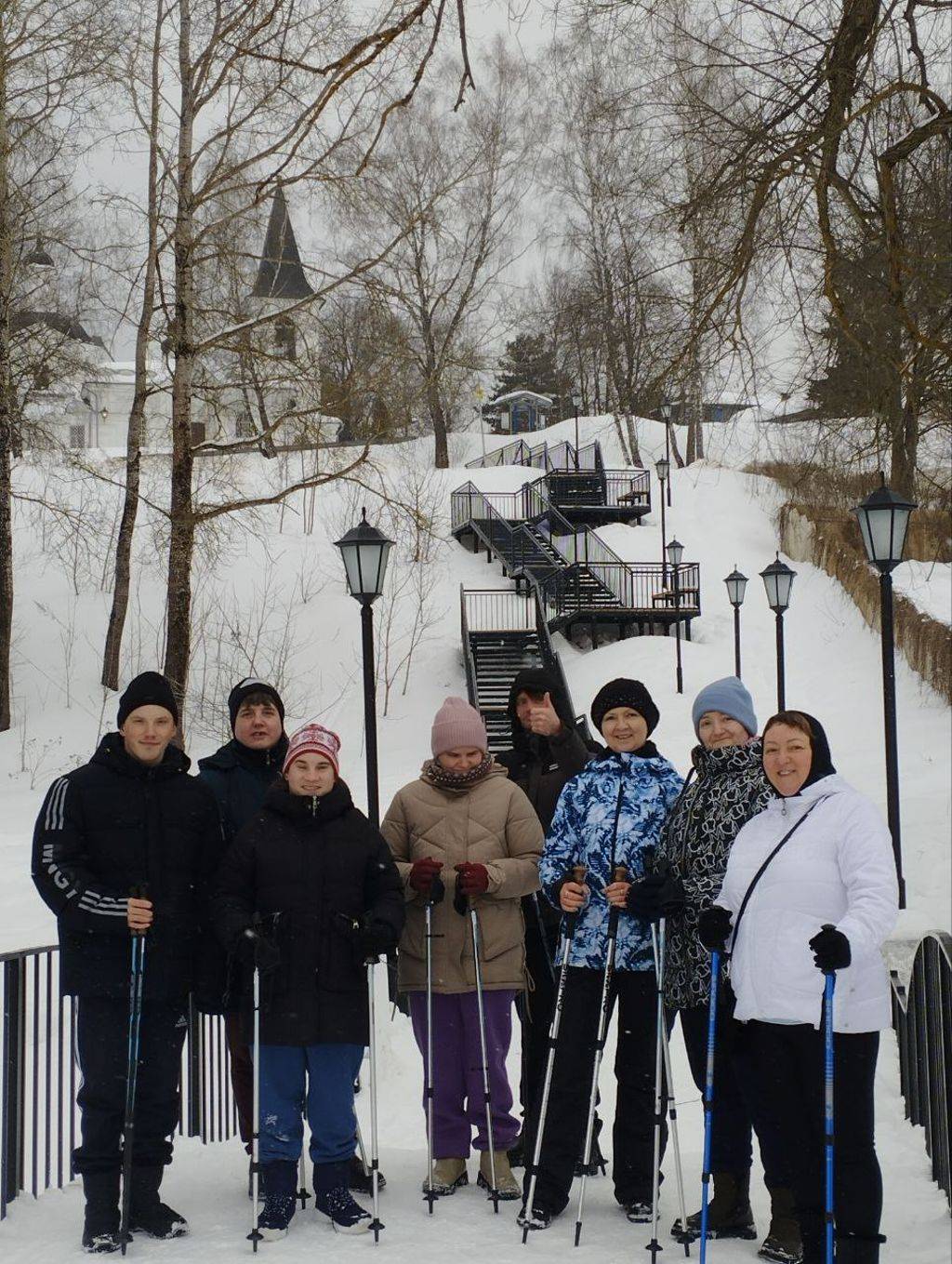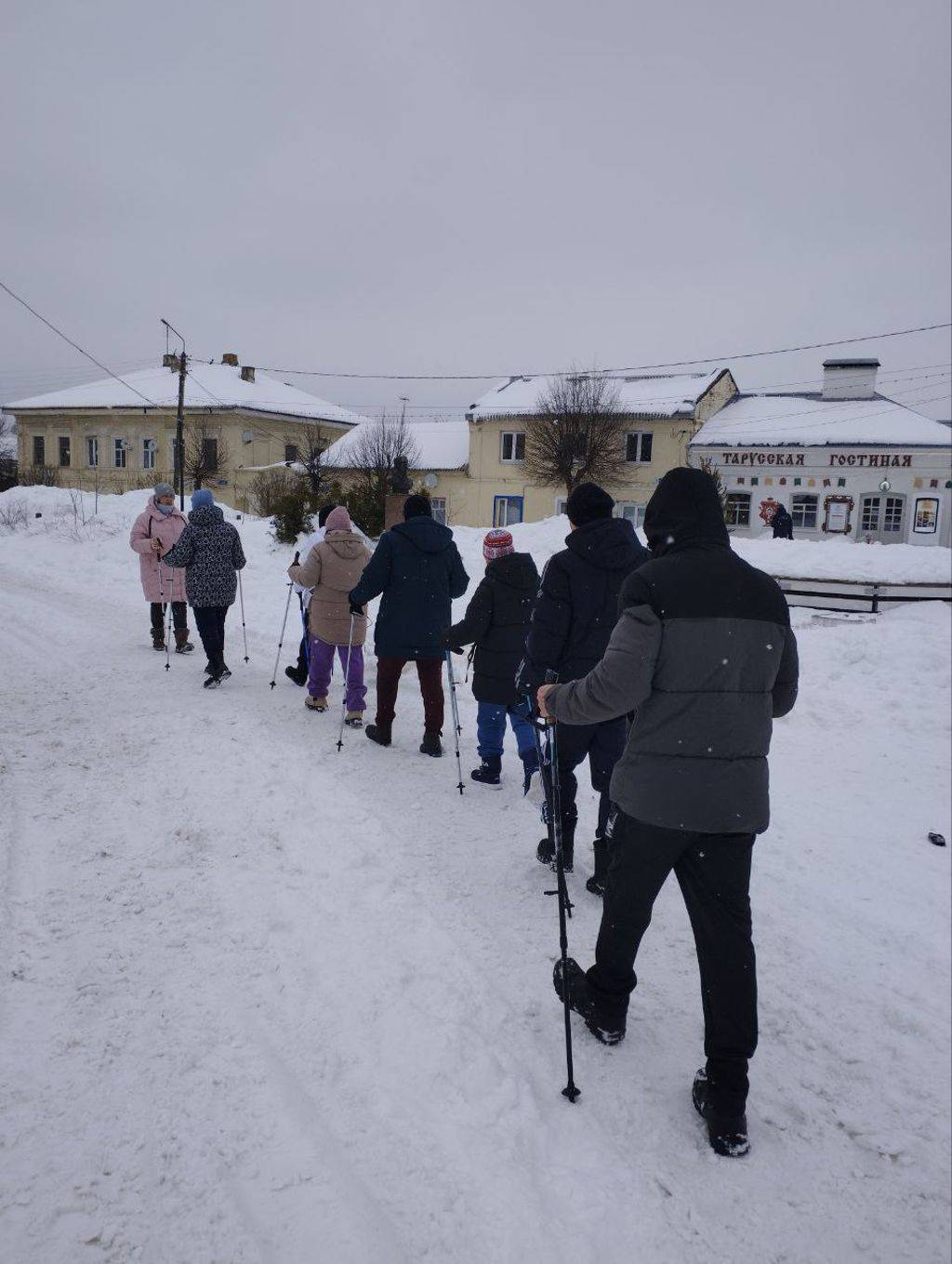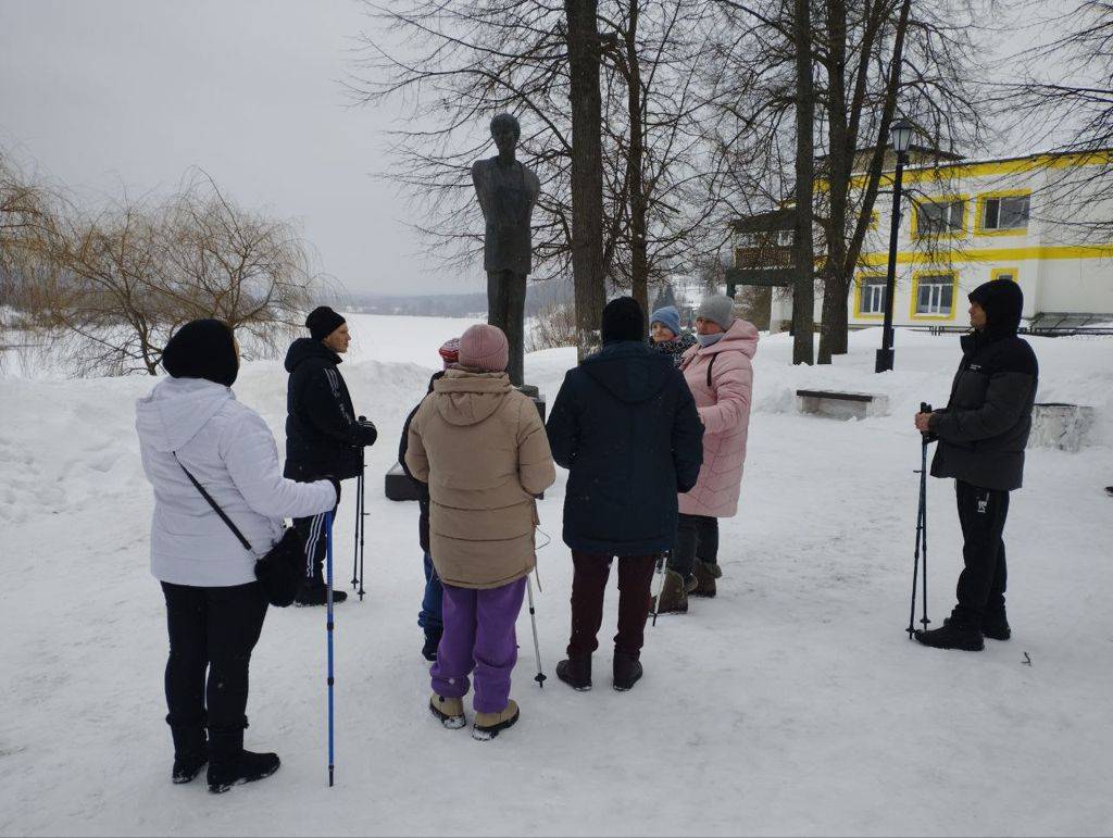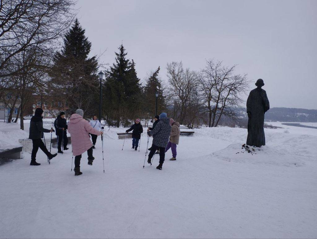 Занятия по северной (скандинавской) ходьбе регулярно проходят по пешеходной зоне в историческом центре города Тарусы. Как обычно ребята делают разминку в начале занятия, растяжку — в конце, проходят по живописному берегу реки Оки около полутора километров.
