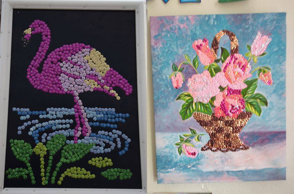 Проживающая психоневрологического отделения Павлова Галина любит рисовать картины. Но не красками и не маркерами, а пайетками.