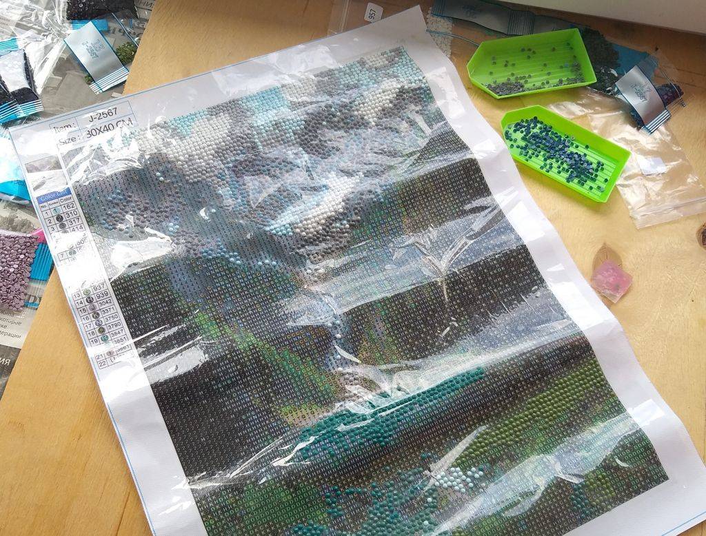 А недавно Галина попробовала алмазную мозаику. Сделала несколько пробных небольших картинок. И начала работать над большой.