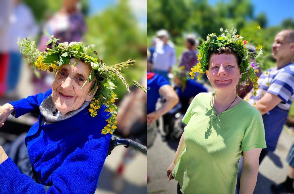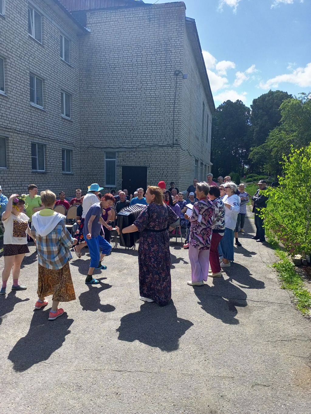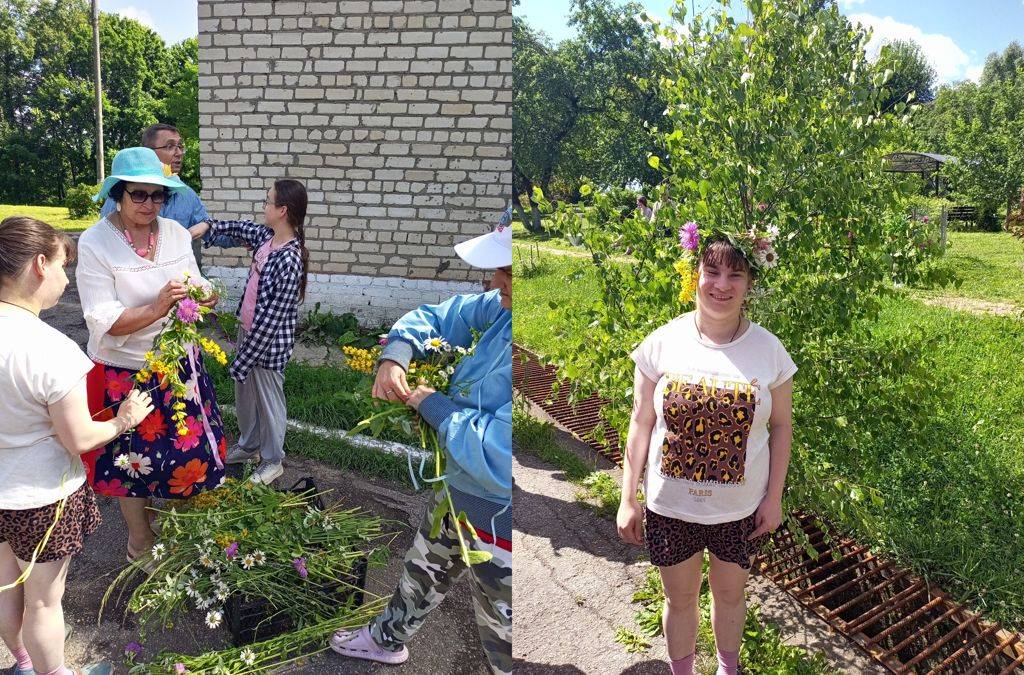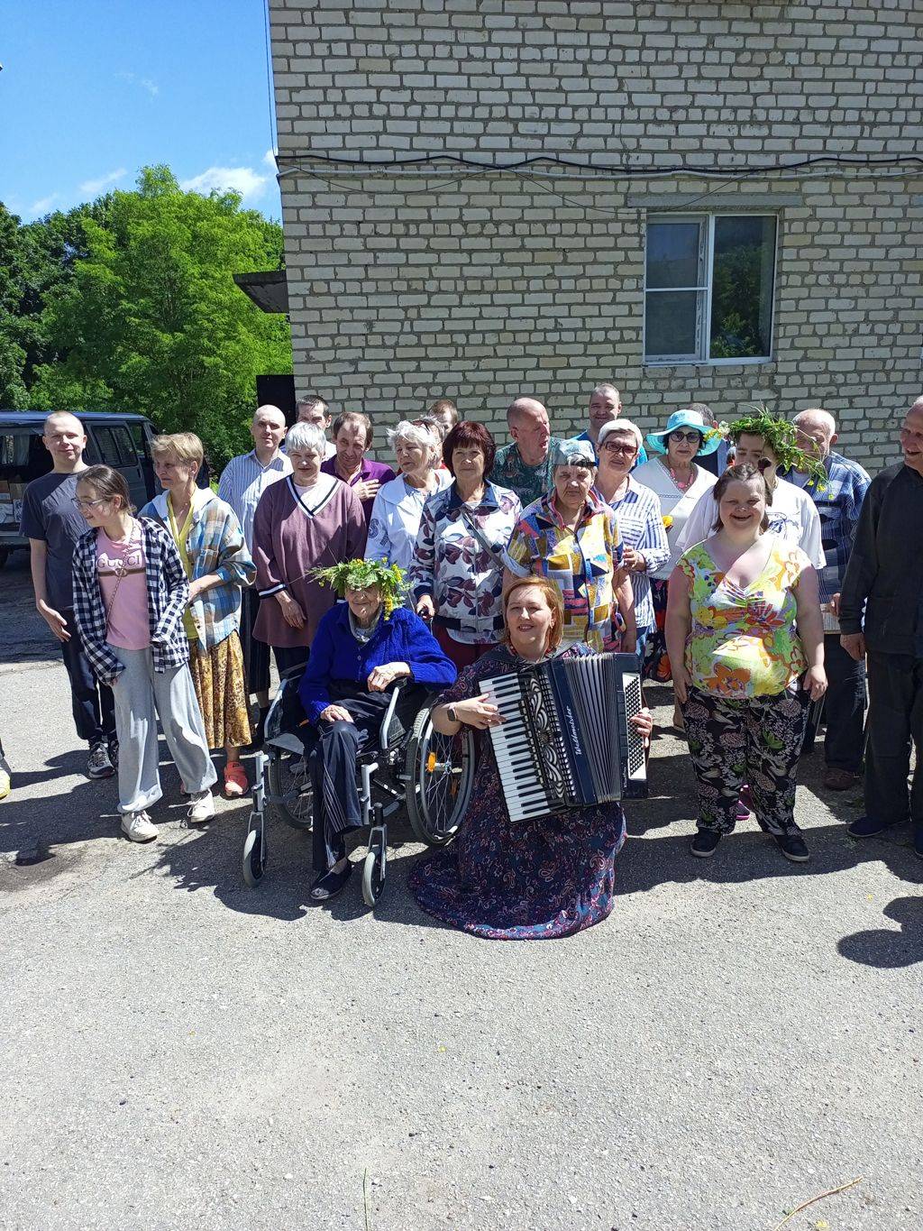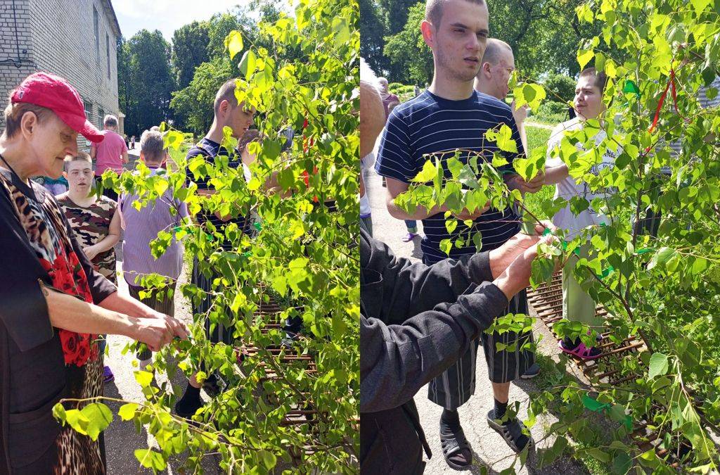 Устроили на свежем воздухе импровизированный концерт. Водили хороводы, провели конкурсы венков и частушек. Пели задорные народные и просто любимые песни, повязывали на берёзку ленточки и загадывали желания.