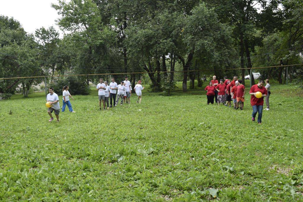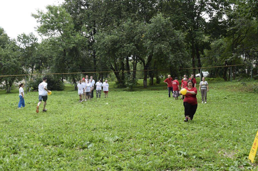 Провели с проживающими спортивное мероприятие. Для соревнований ребята поделились на две команды, надели футболки разных цветов. С трибун помпонами, трещотками и кричалками игроков поддерживали болельщики.
