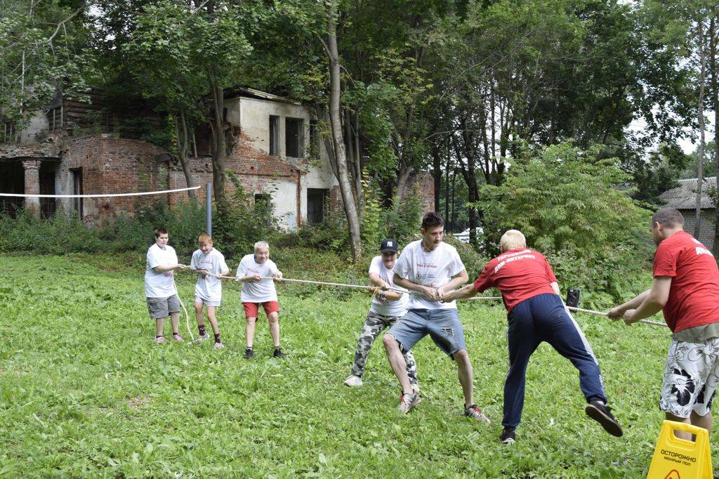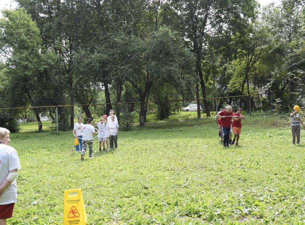 Разминка, конкурсы, эстафеты, загадки, перетягивание каната, броски мячом в кольцо — набегались, напрыгались. Потратили много энергии и продлили жизнь смехом.