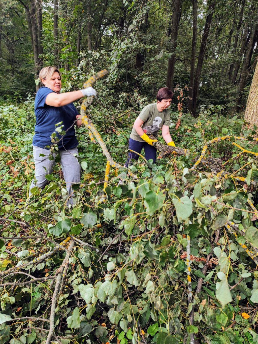 Сначала сделали деревьям красивые «стрижки» к осени.