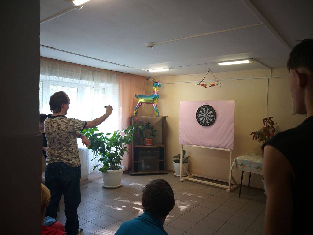 Каждый вторник ребята из психоневрологического отделения играют в дартс.