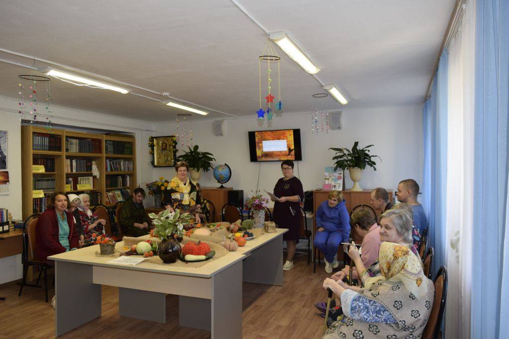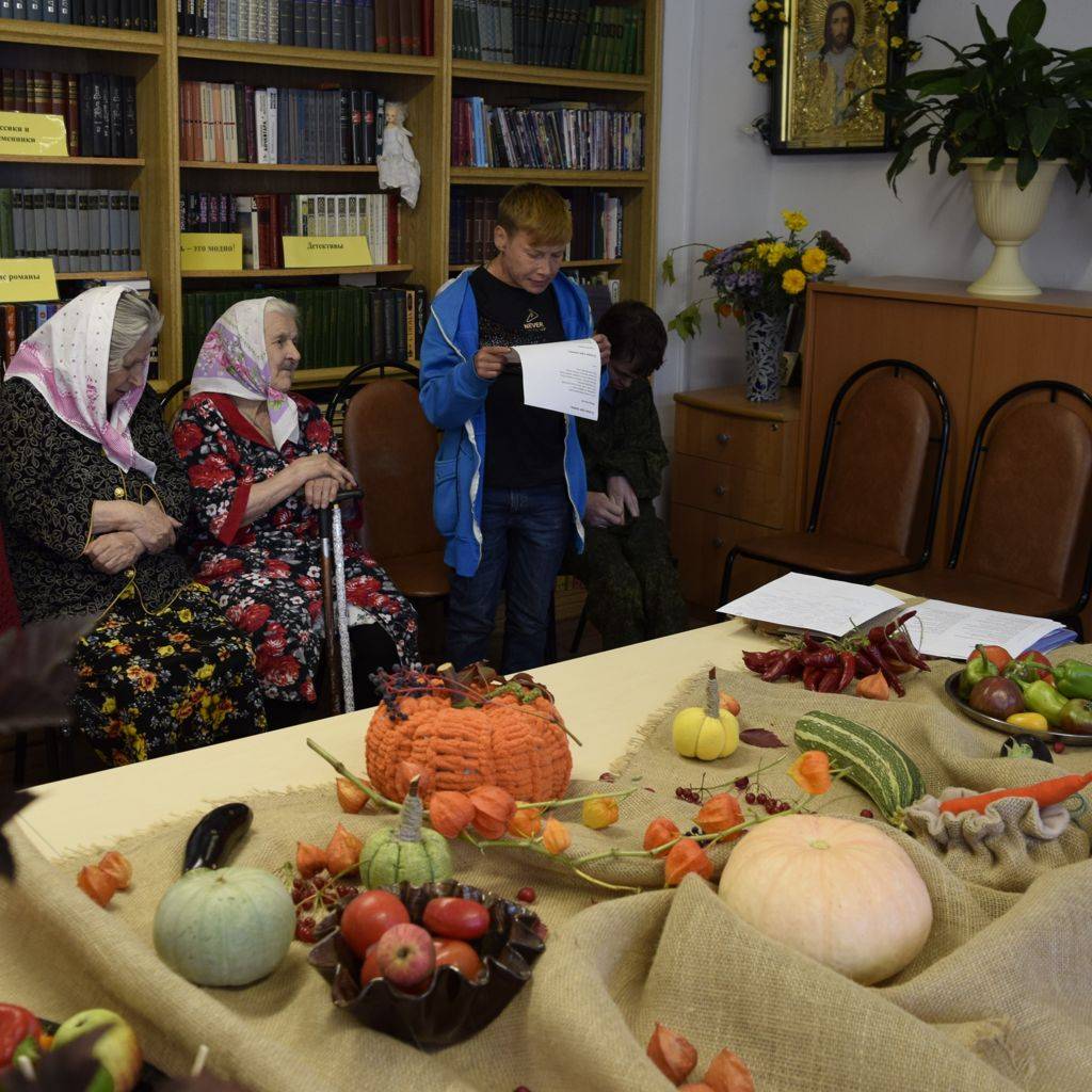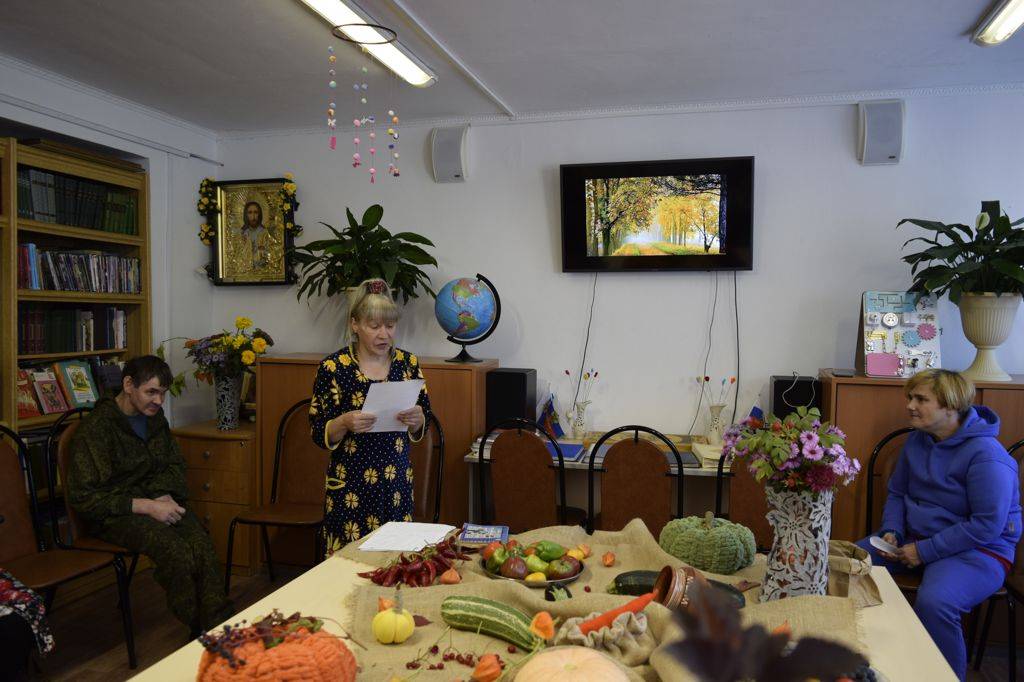 Всю неделю в читальном зале ДСО была выставка осеннего урожая. Первый осенний месяц дарит нам овощи, фрукты, виноград и цветы. В тему выставки провели литературную гостиную «Осень — золотая пора». Читали стихи известных русских поэтов об осени, о красоте природы в это время.