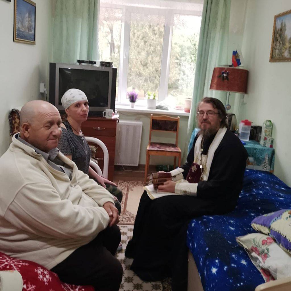 Провёл с проживающими индивидуальные беседы, исповедь и причастие. Когда у отца Петра осталось немного времени, побеседовал и с другими желающими.