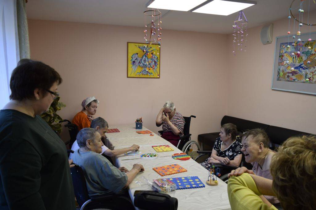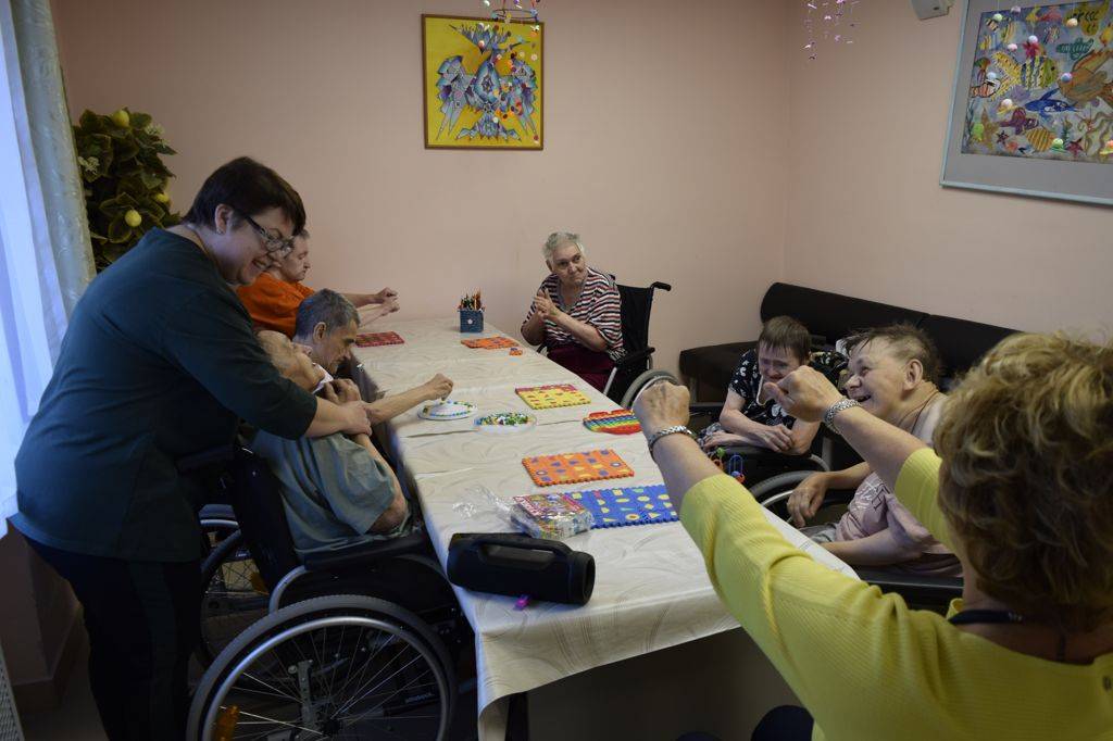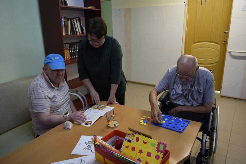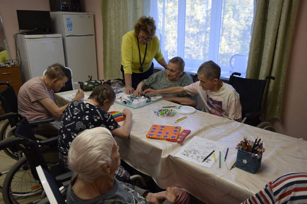 Воспитатель Екатерина Михайловна Теммер и специалист по социальной работе Инна Васильевна Лобода провели совместное занятие с маломобильными гражданами.