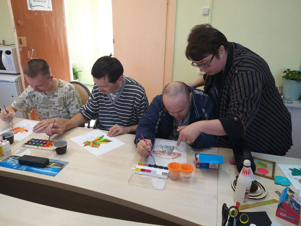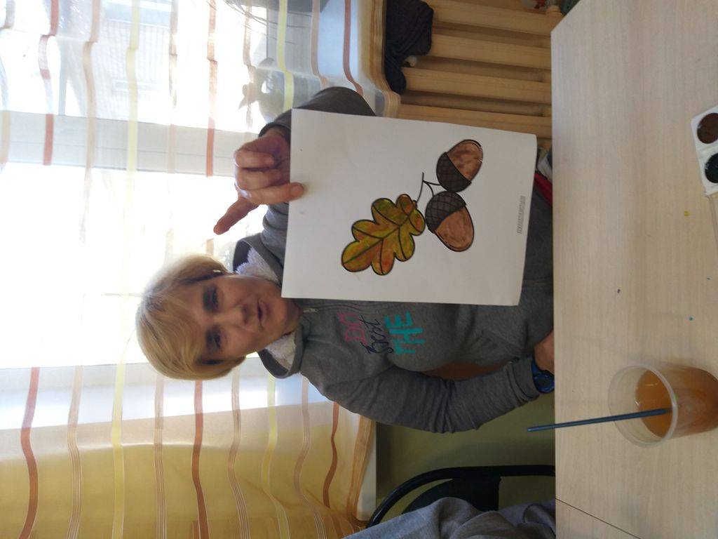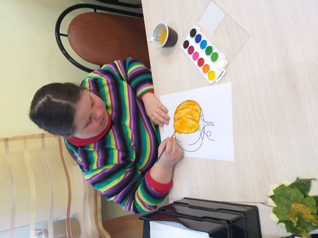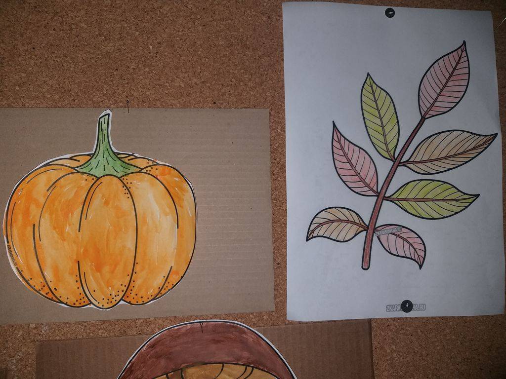 Для работы с акварелью выбрали крупные изображения. Раскрасили поярче, в цветах осенней палитры.