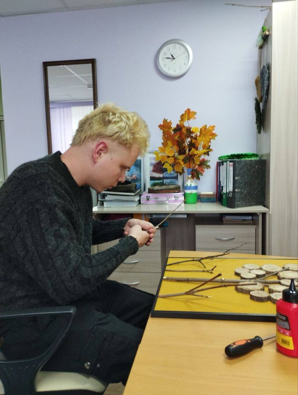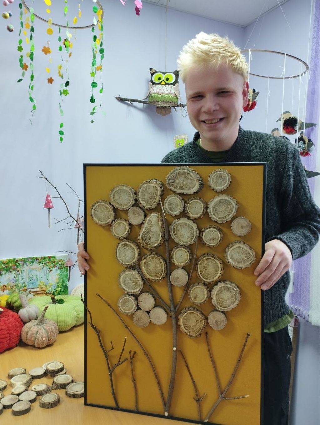 Работал Михаил с природными материалами, поэтому «Осеннее дерево» удалось на славу.