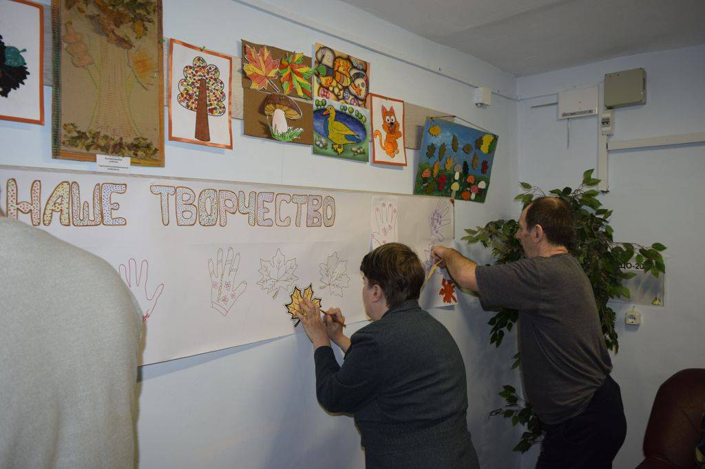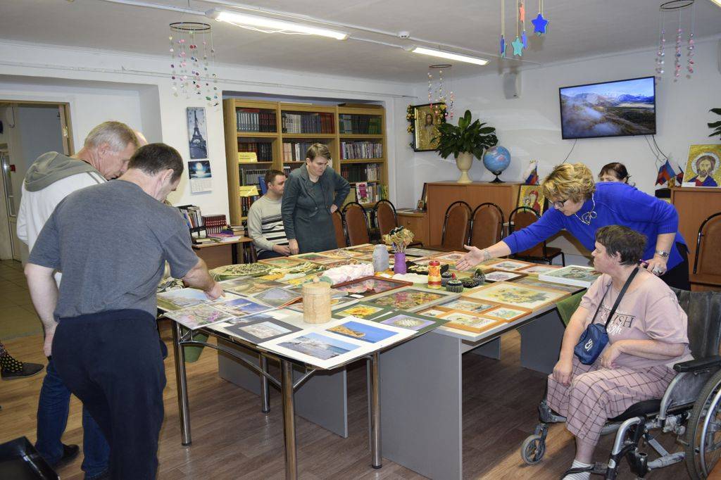 Специалист по социальной работе Инна Васильевна Лобода организовала для проживающих выставку «Наше творчество».
