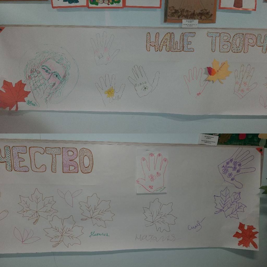 Открывали выставку интерактивной экспозицией — на чистом холсте каждый желающий мог оставить свой «отпечаток». Например, обвести ладонь и поставить автограф, нарисовать