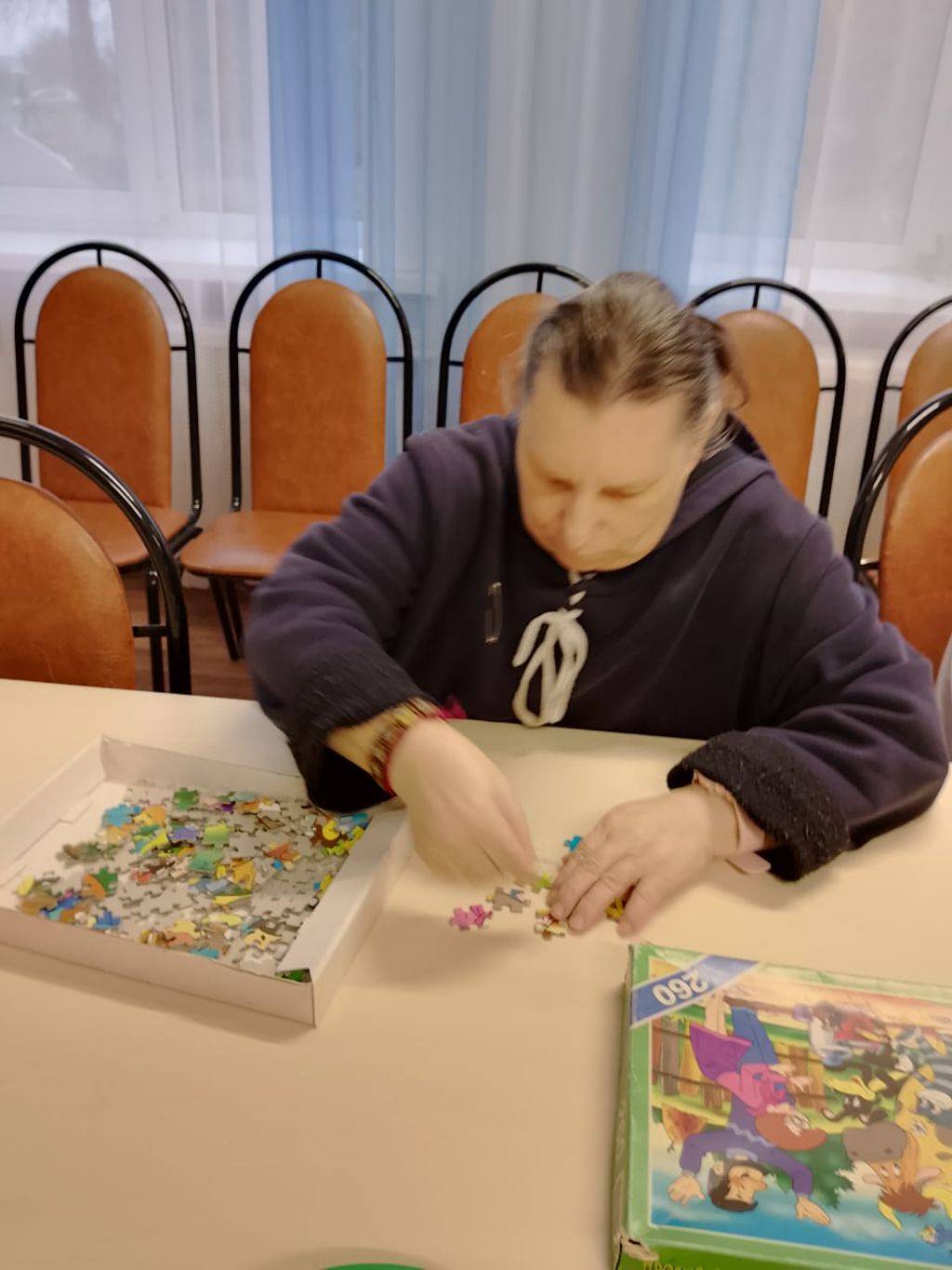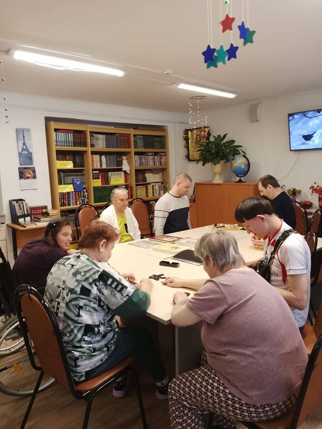Проживающие приходят сюда порисовать, пособирать пазлы, поиграть в настольные игры, посмотреть концерты или занимательные программы, ну и просто почитать и пообщаться.