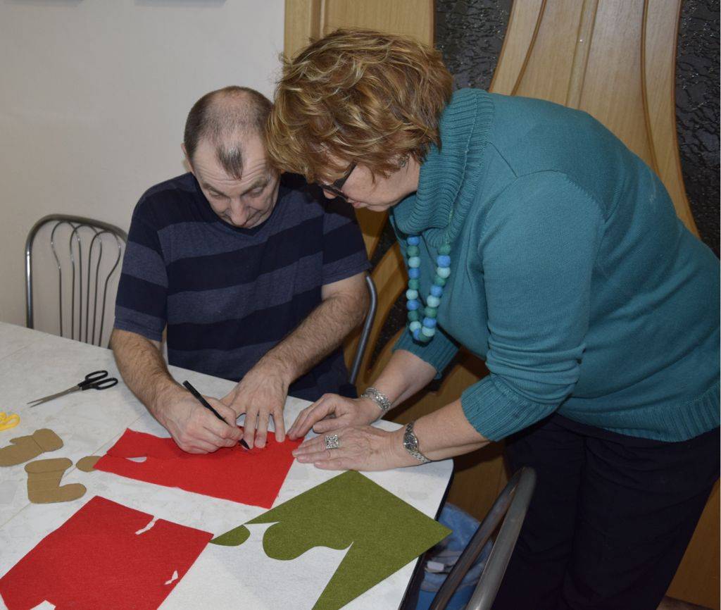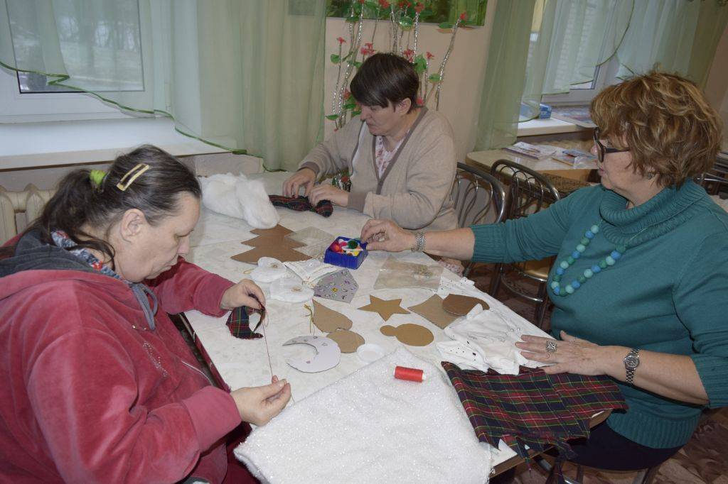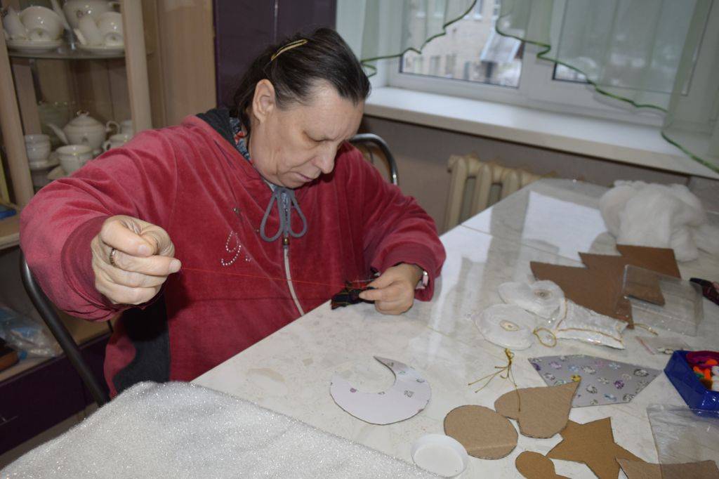 Специалист по социальной работе Инна Васильевна Лобода с проживающими отделения Милосердие занялись изготовлением игрушек.