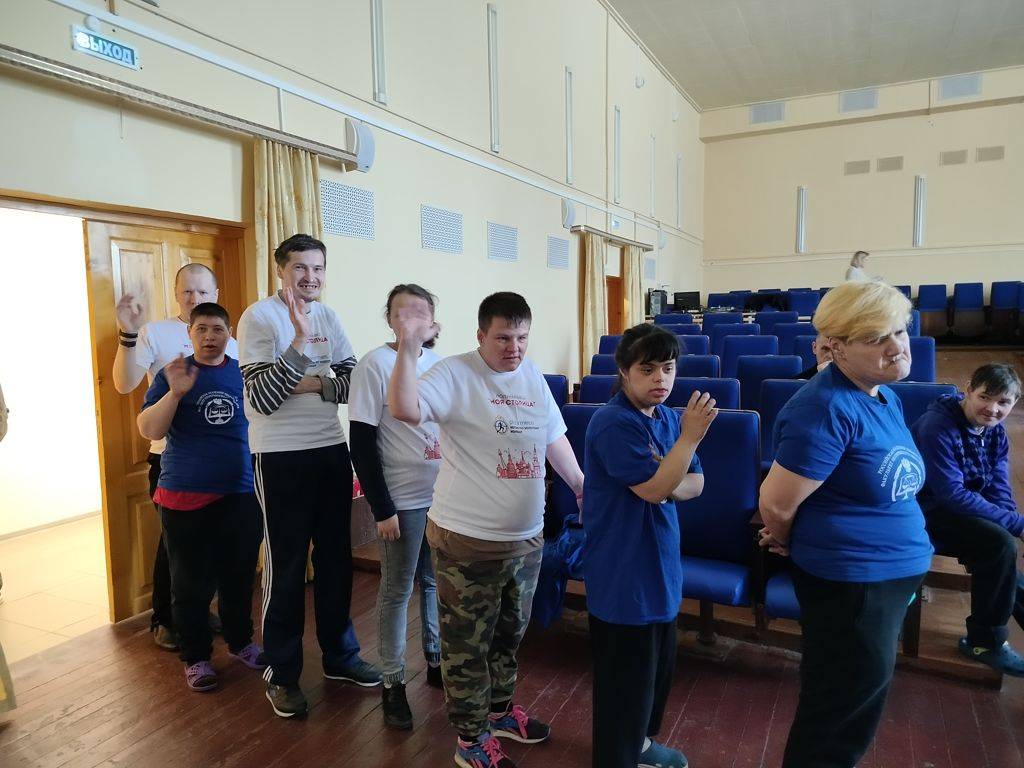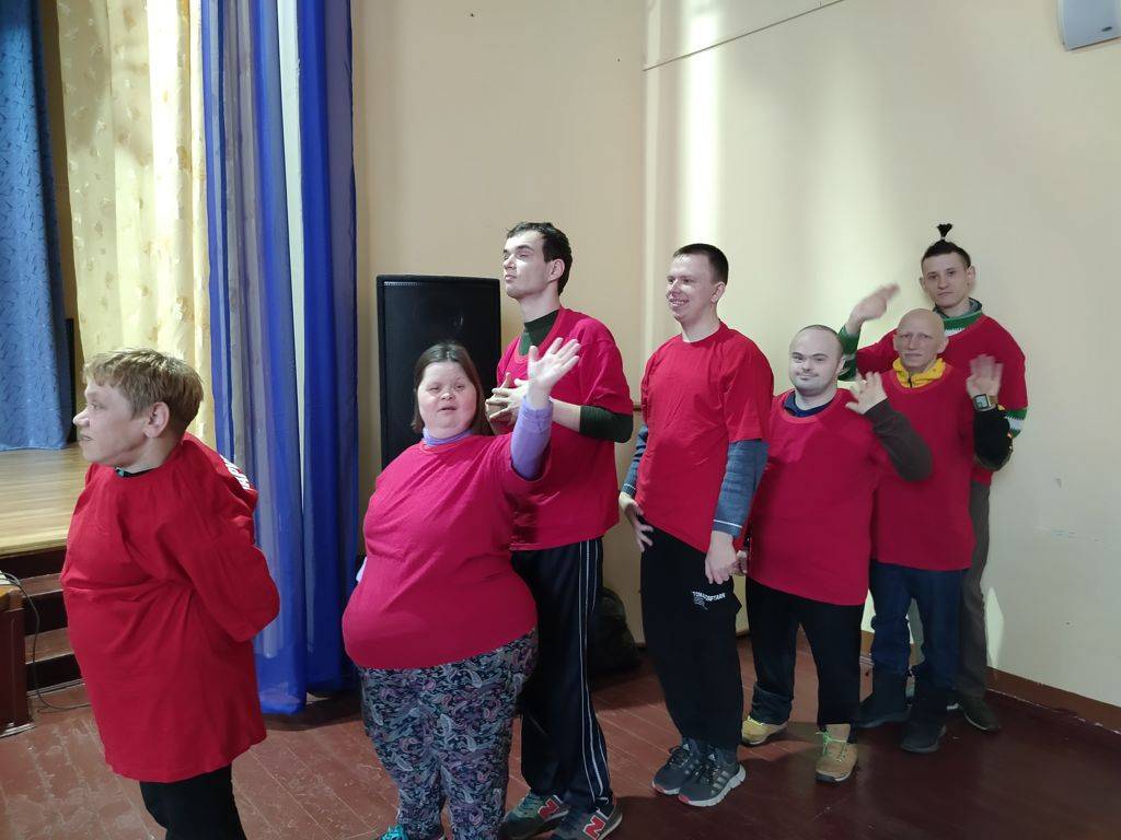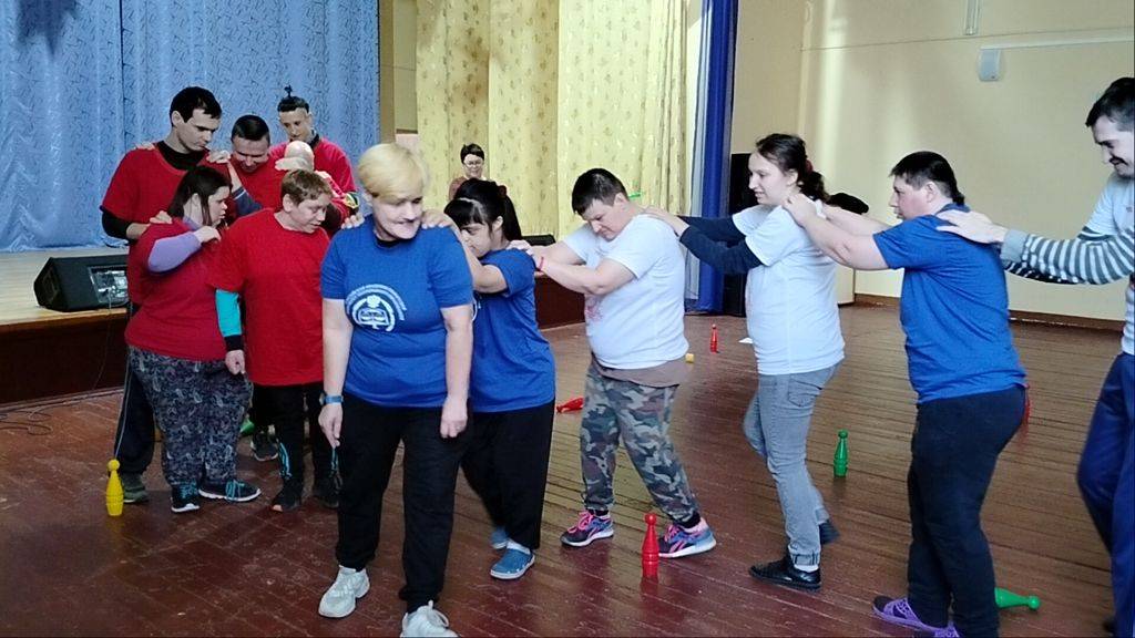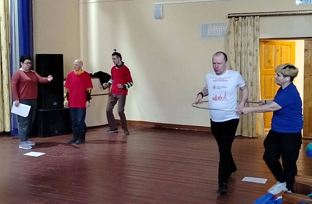 В актовом зале провели коллективное спортивное мероприятие с проживающими психоневрологического отделения.
