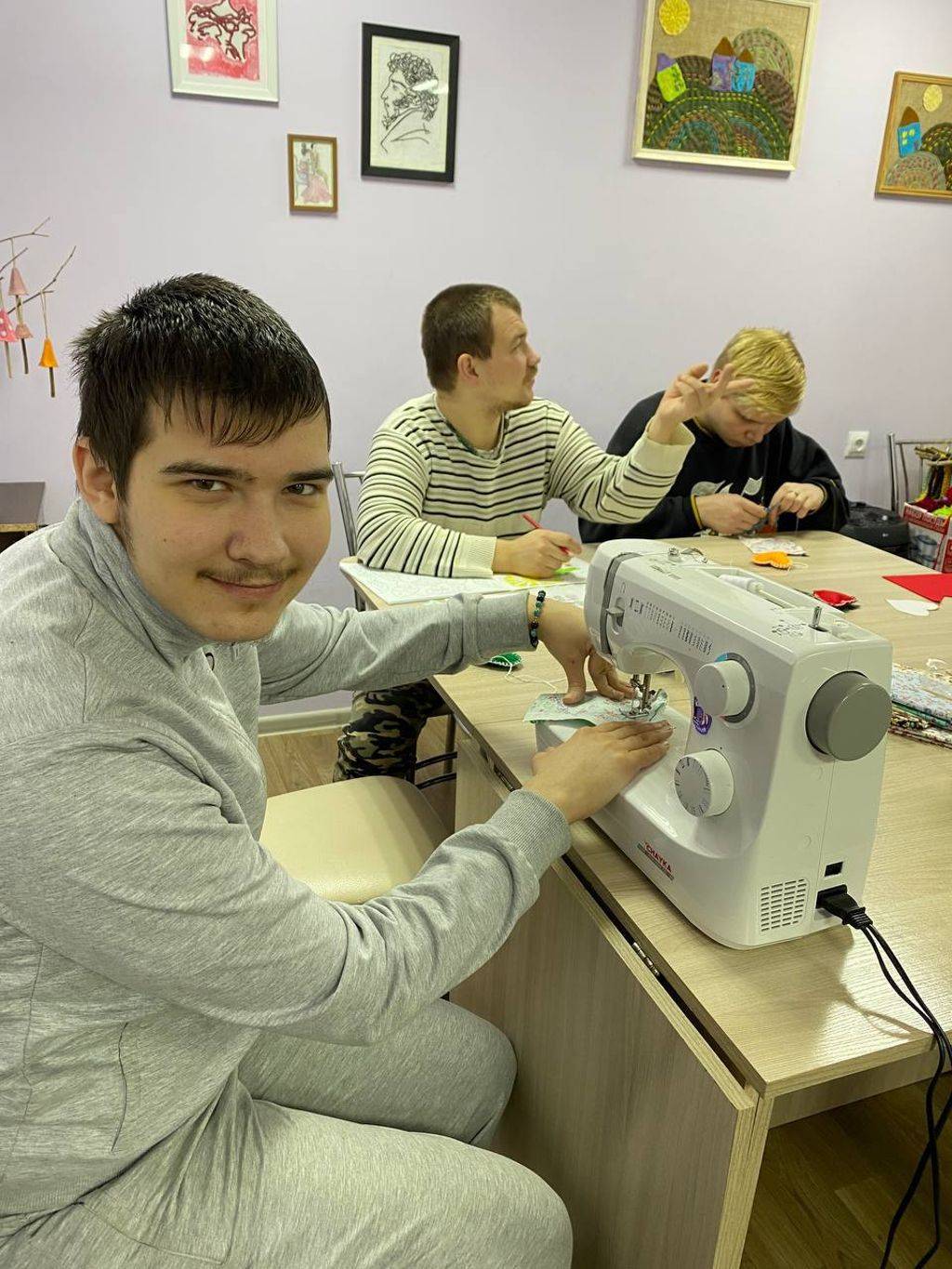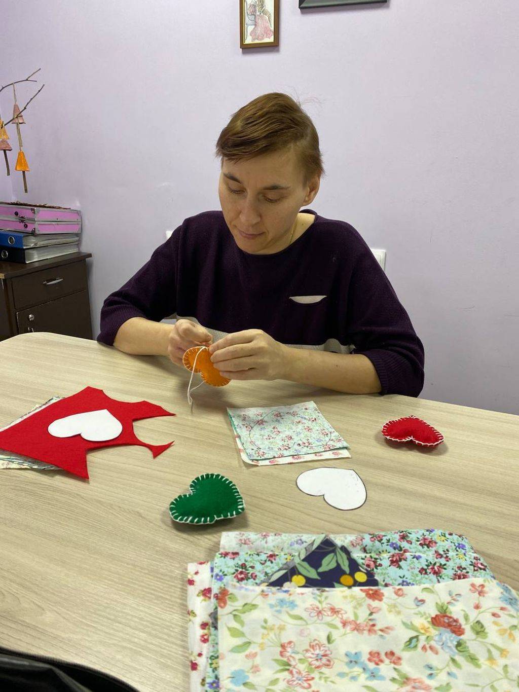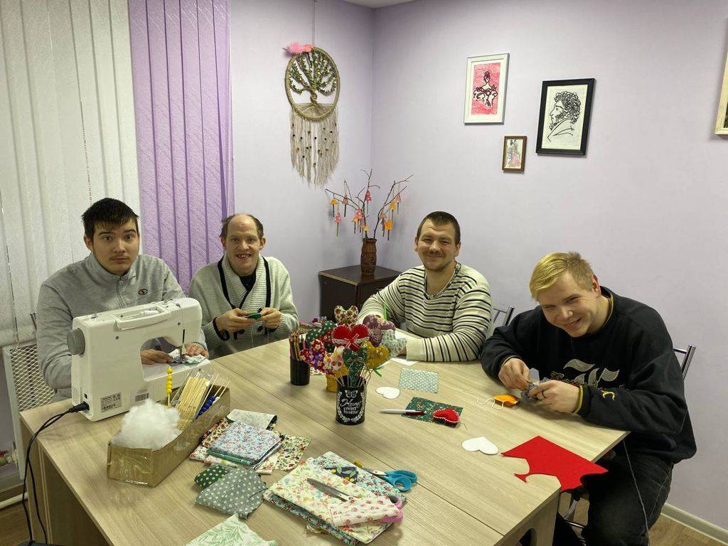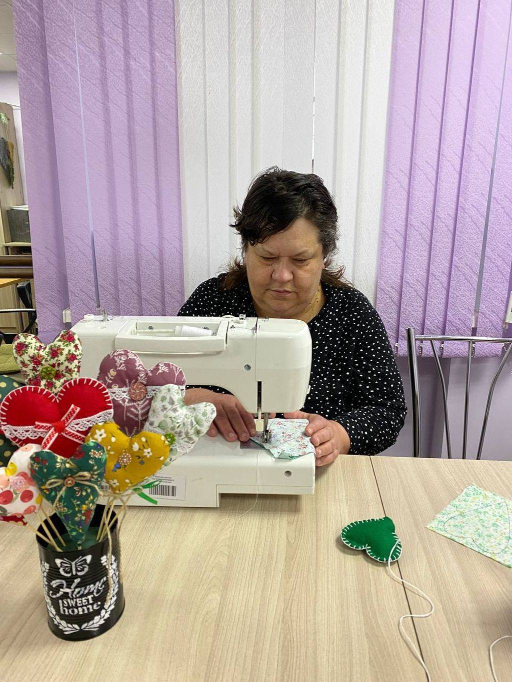 На выходных ребята из отделения сопровождаемого проживания вместе с воспитателем шили сердечки из фетра и ткани вручную и на швейной машине.