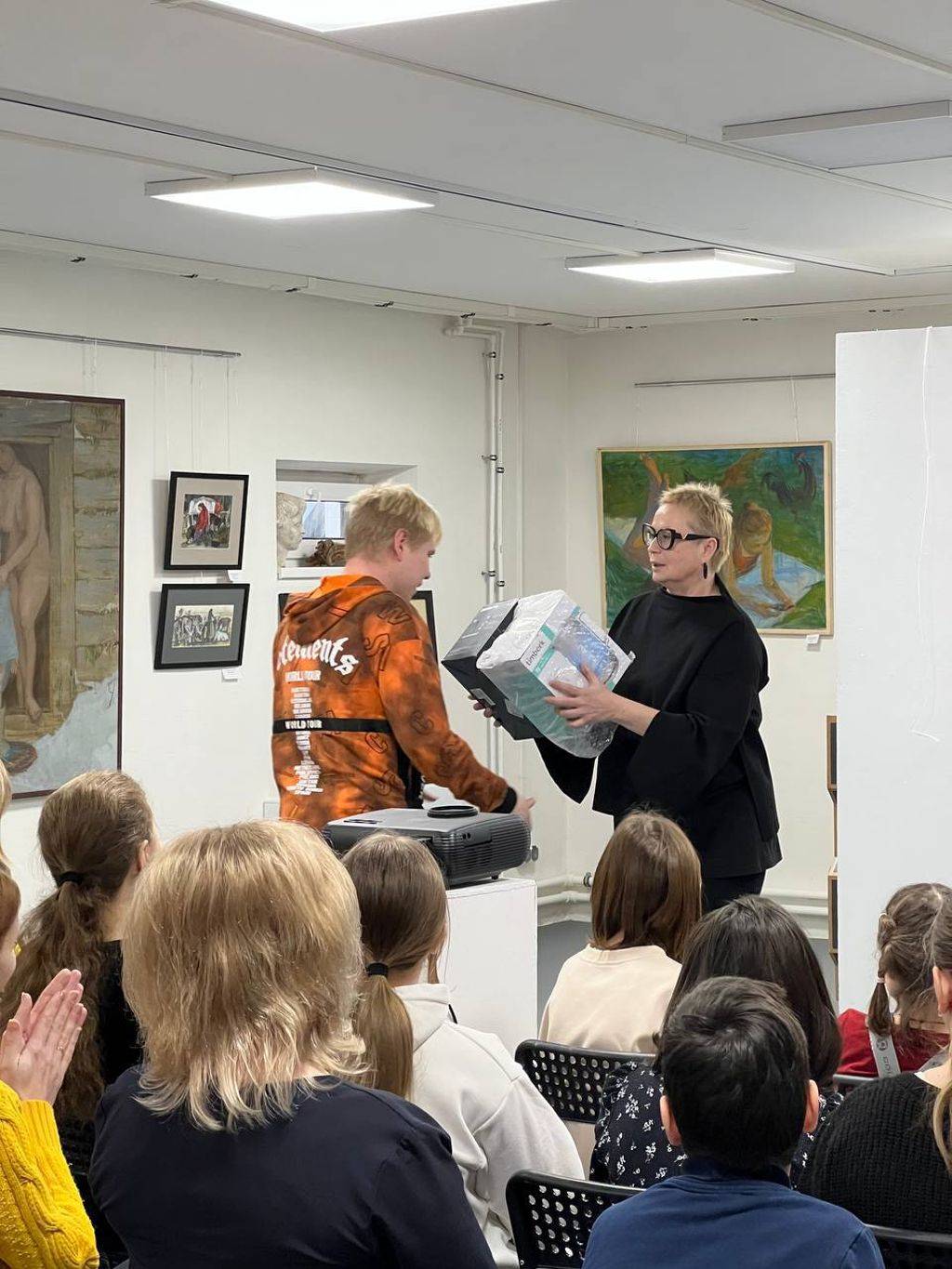 На выставке работ участников из Тарусы выступили член жюри конкурса и художники города Тарусы. После, в торжественной атмосфере, был показан фильм о художнице, которой в этом году могло бы исполниться 73 года.
