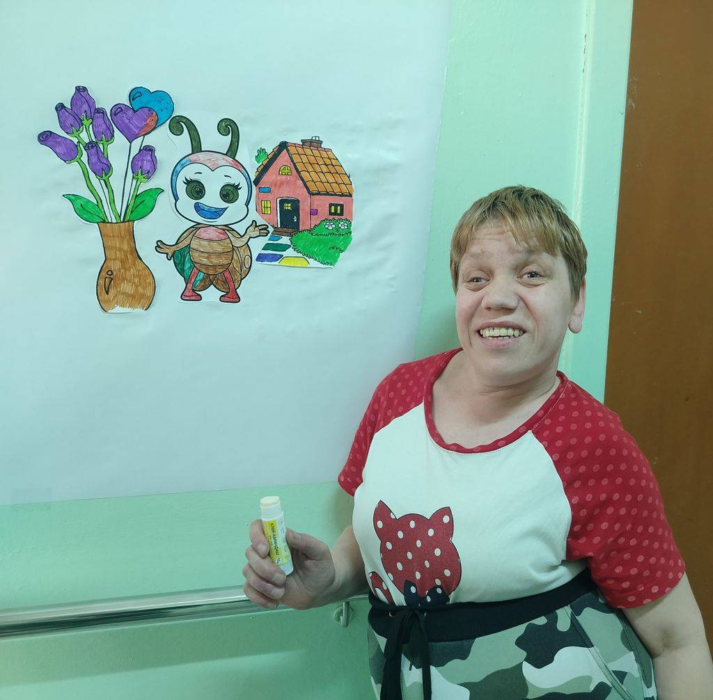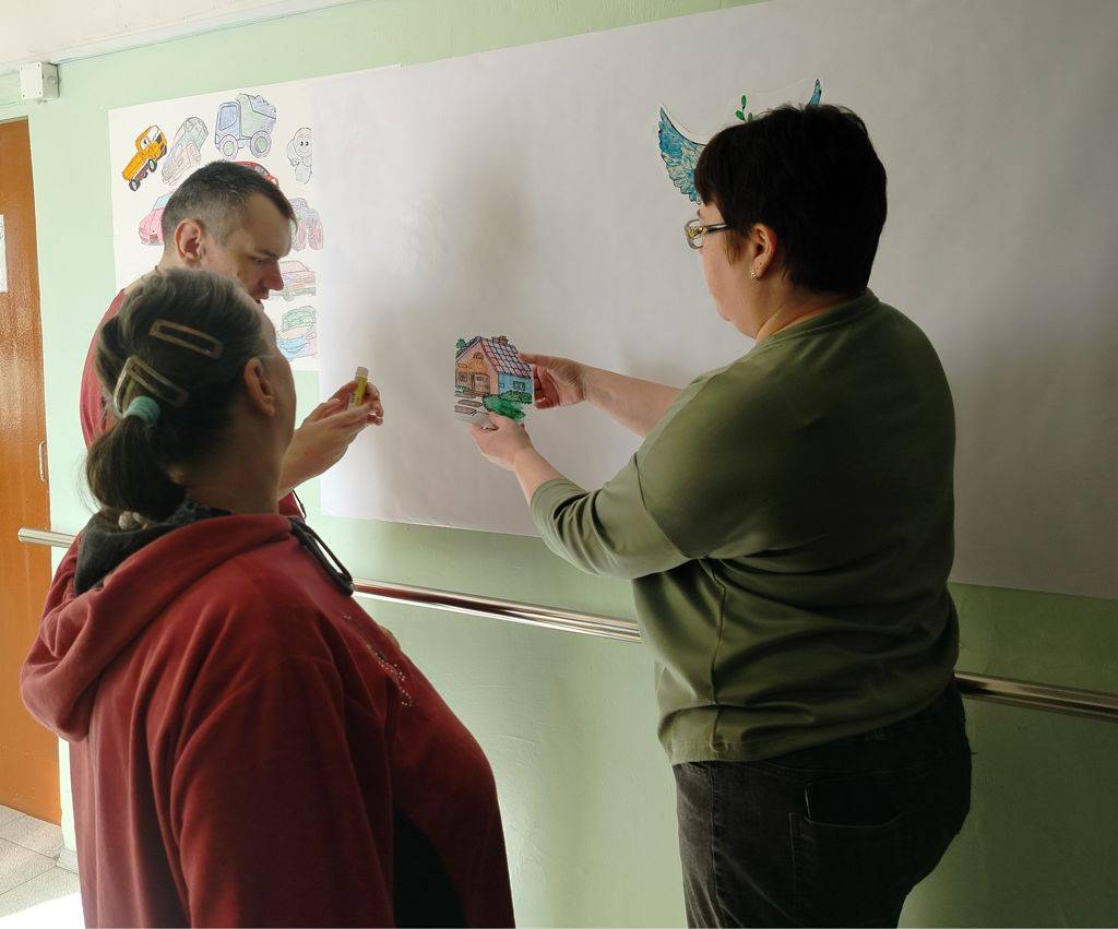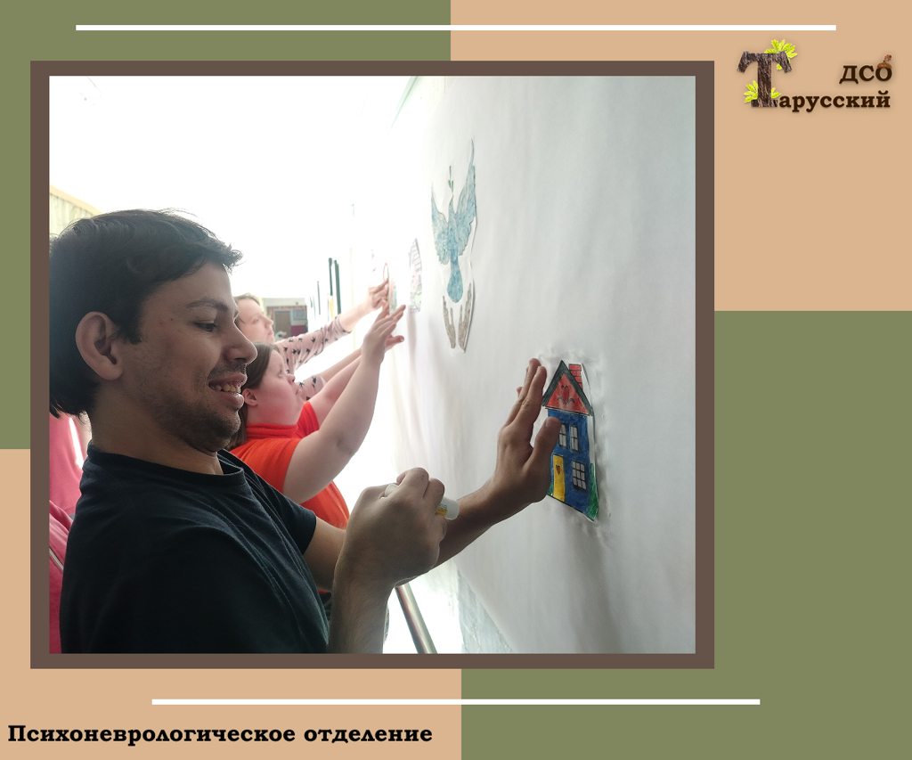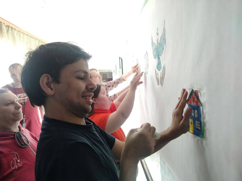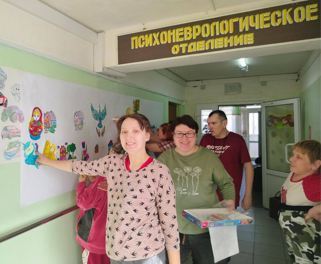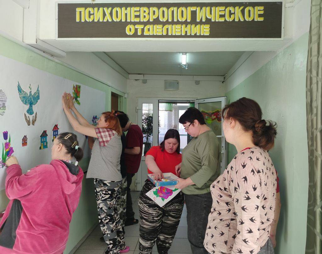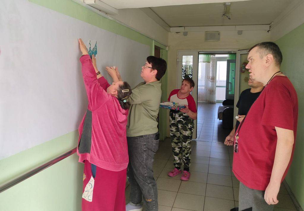 Воспитатель с ребятами из психоневрологического отделения сделали в холле третьего этажа небольшую