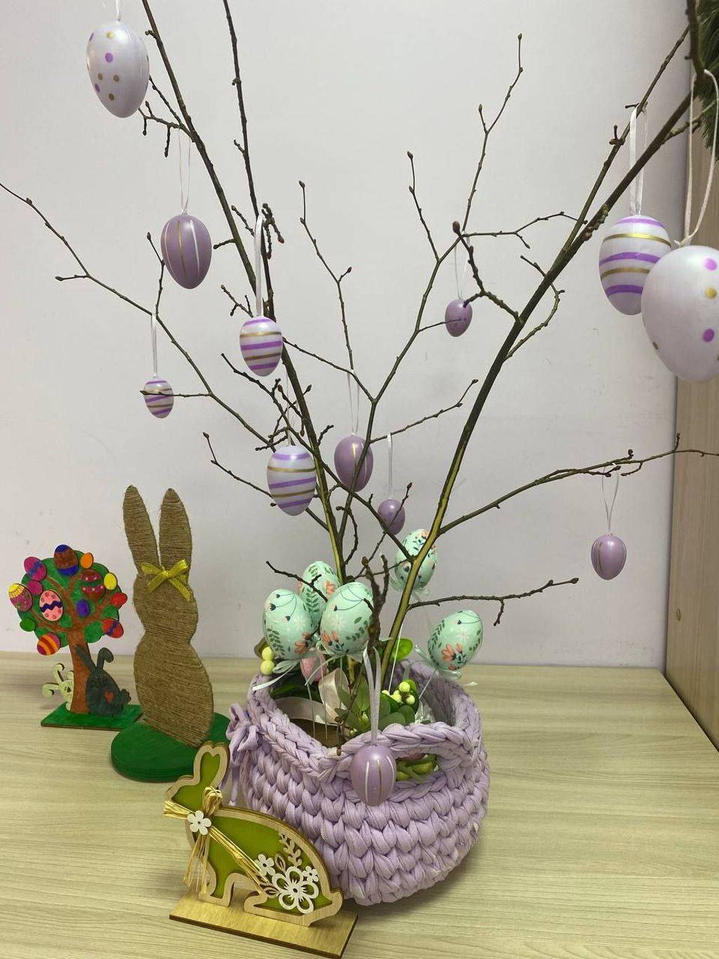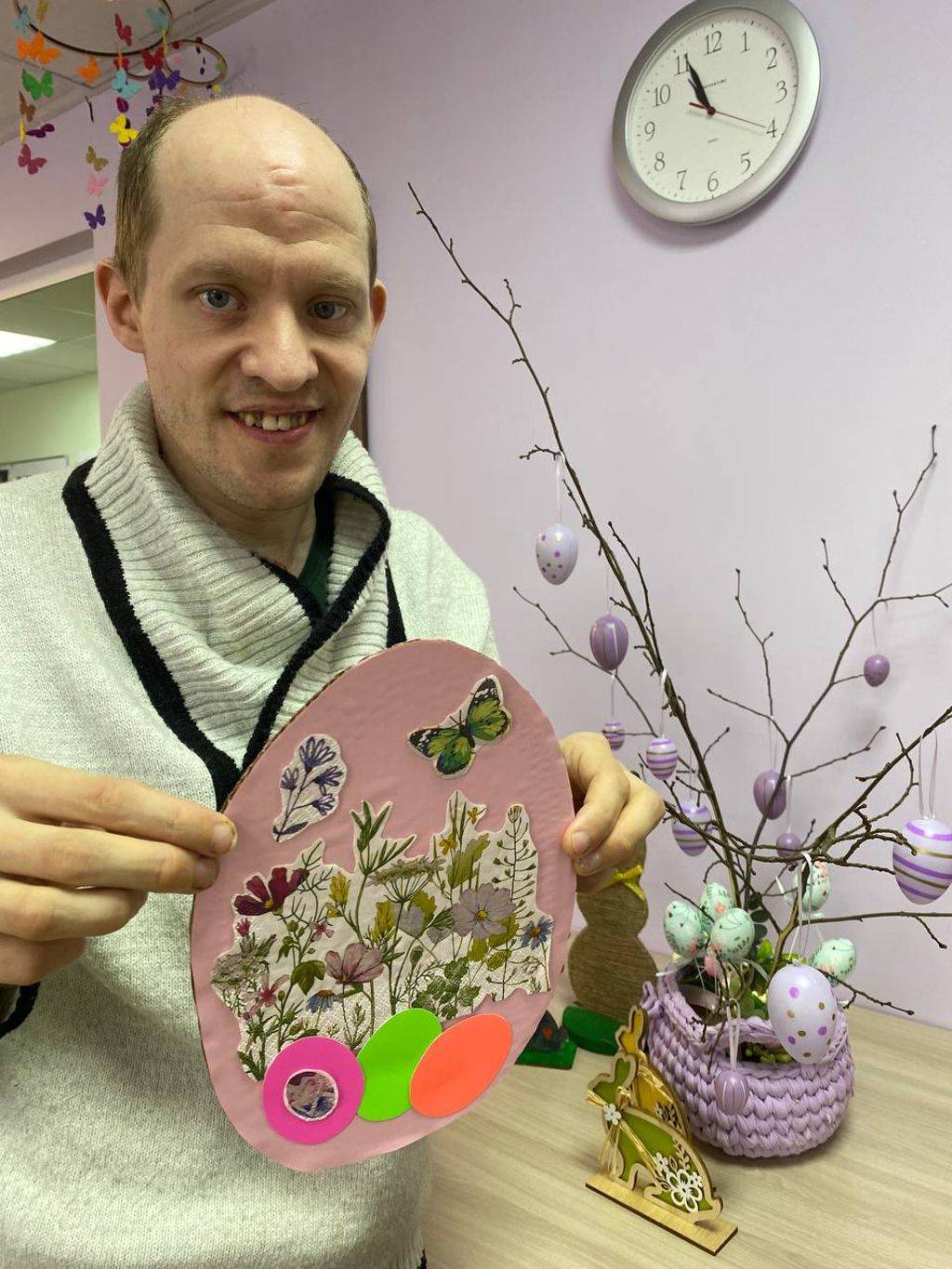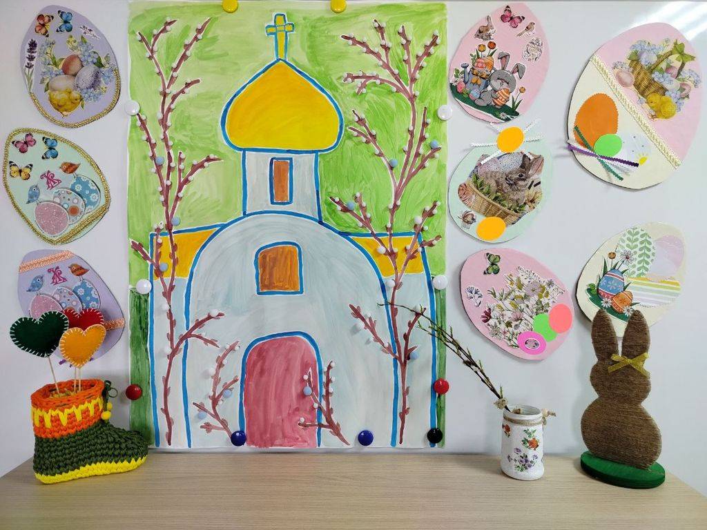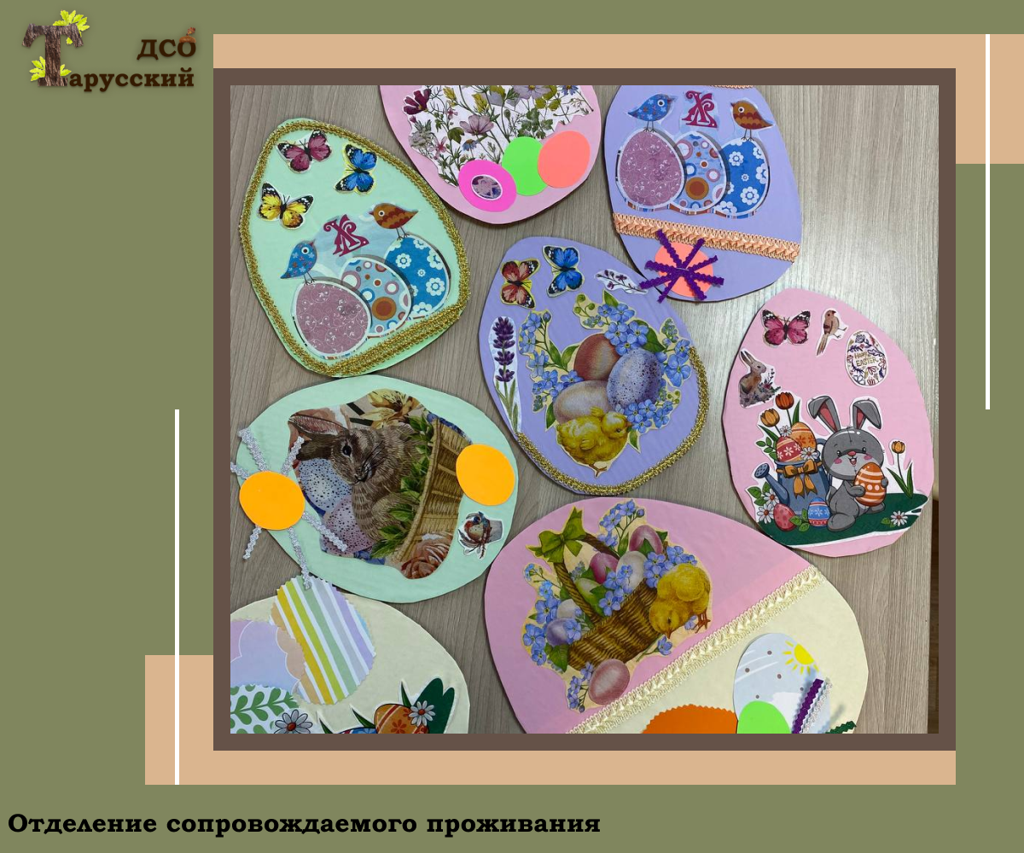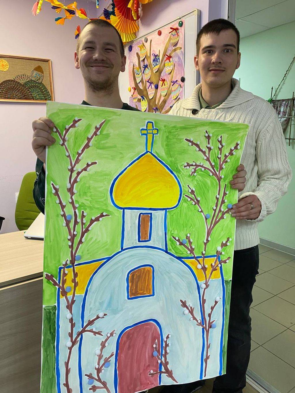 Проживающие отделения сопровождаемого проживания вместе с воспитателями подготовили к празднику Пасхальное дерево, стенгазету и