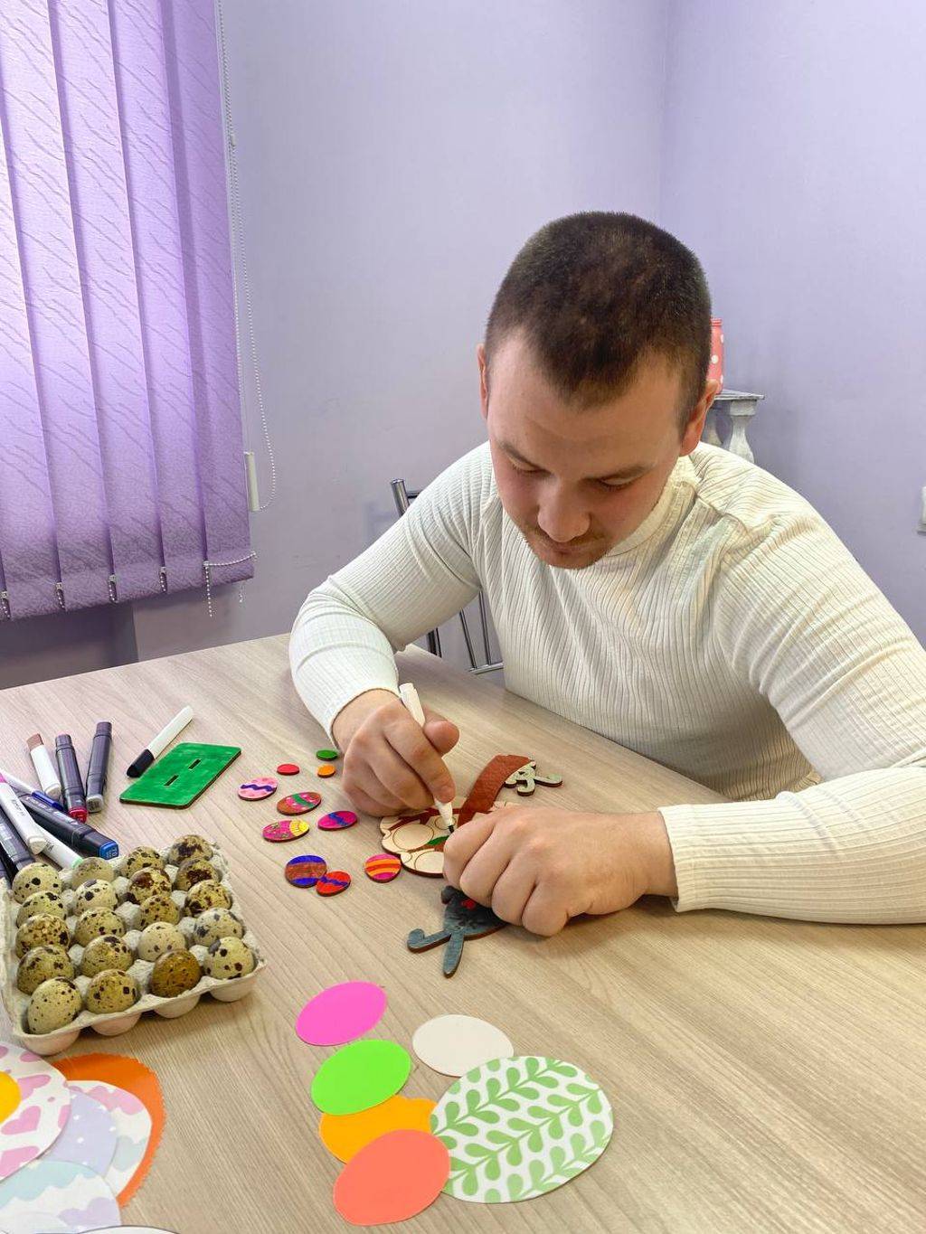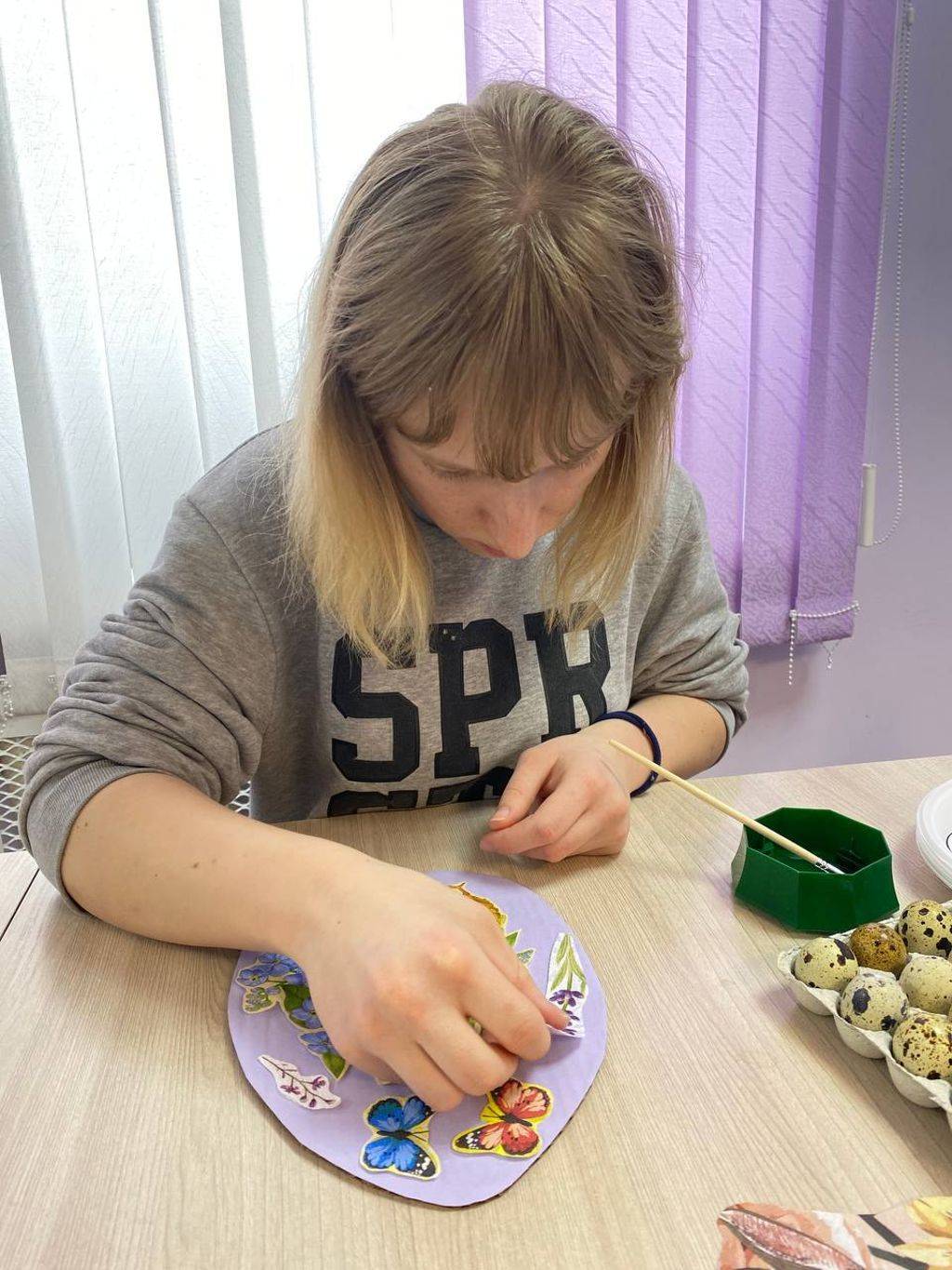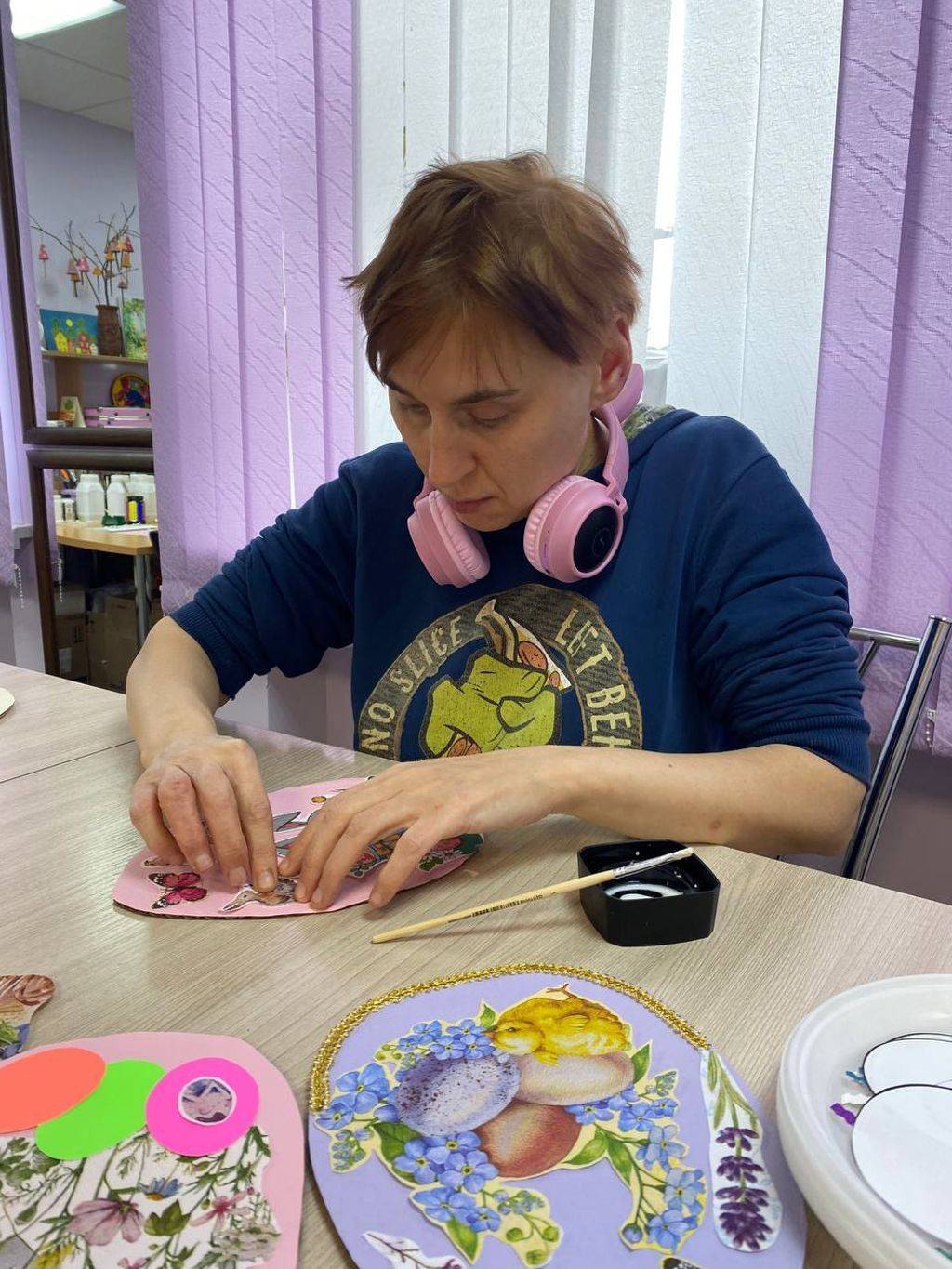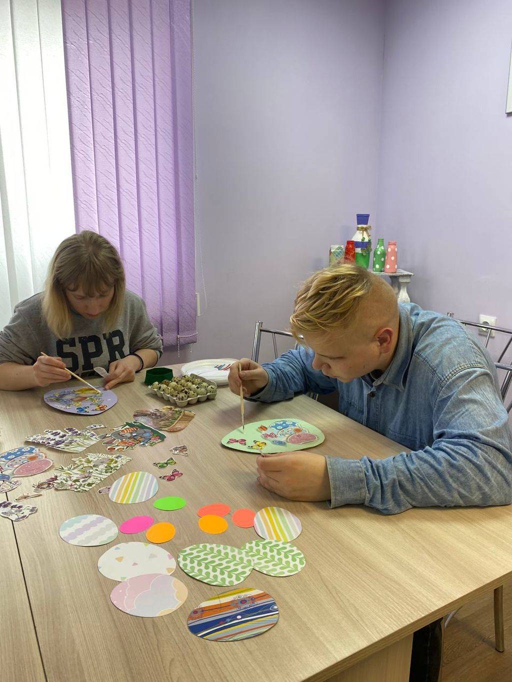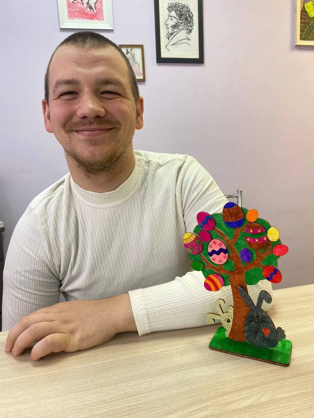 Проживающие отделения сопровождаемого проживания вместе с воспитателями подготовили к празднику Пасхальное дерево, стенгазету и