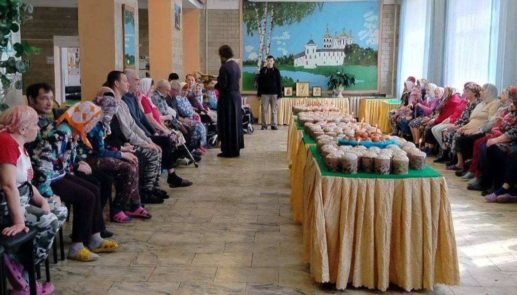 Для торжественной службы все собрались в столовой. Отец Пётр прочитал проповедь о том, как важно иметь добрые помыслы, жить с Богом, исповедоваться и молиться.