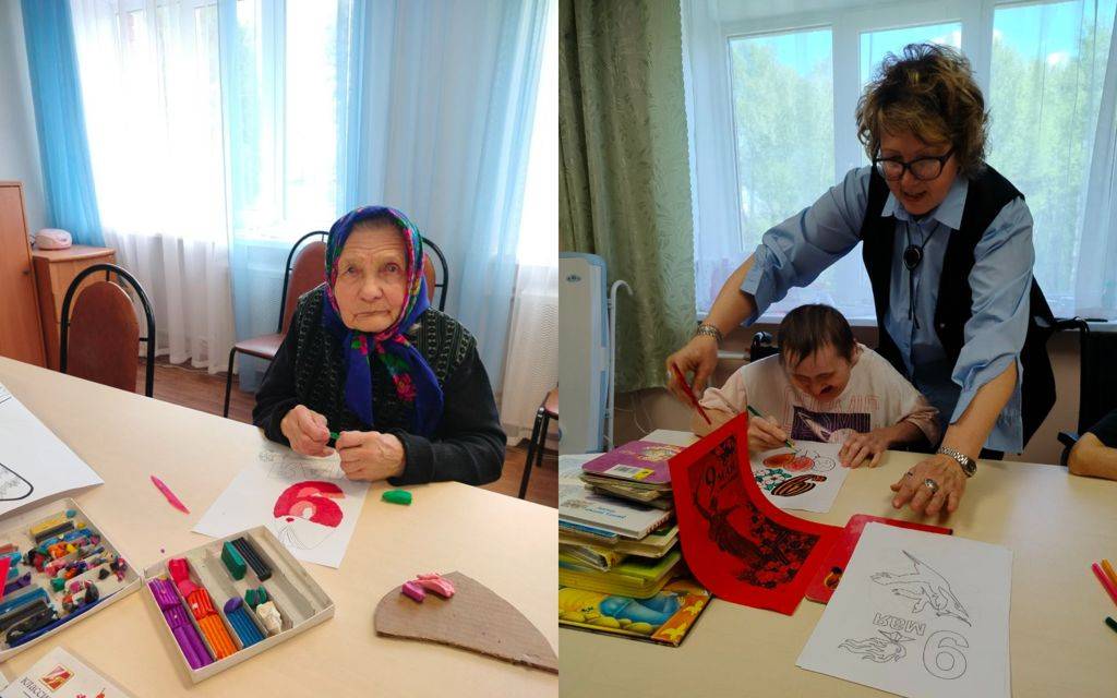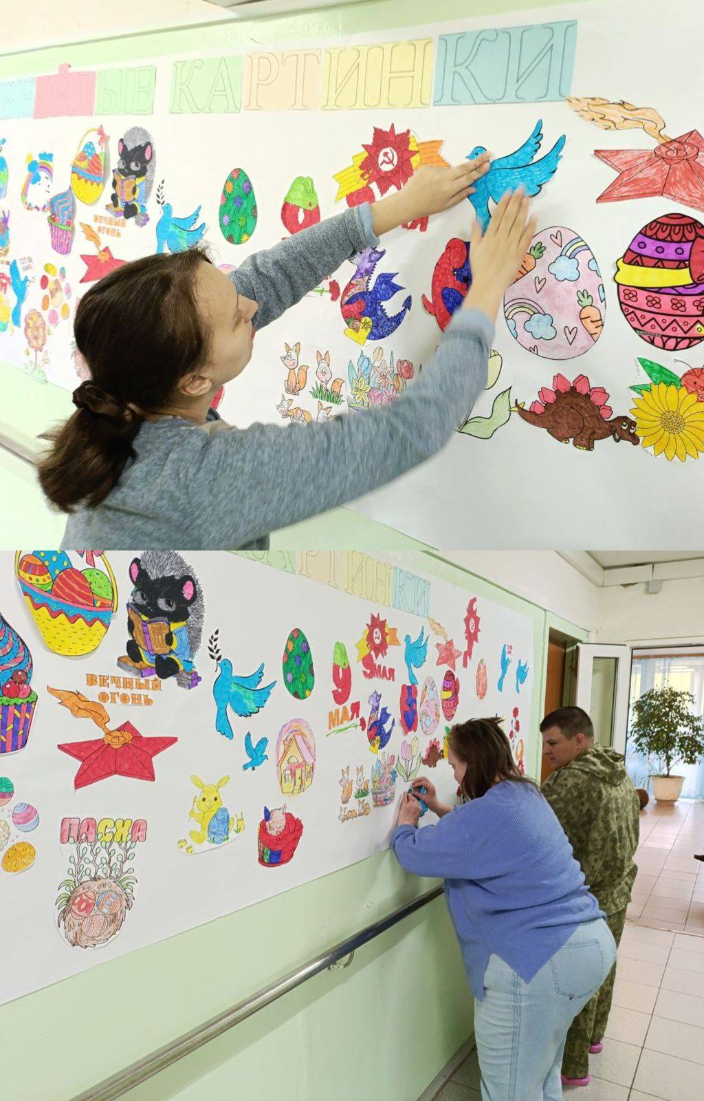 ⭐️Проживающие отделения Милосердие и психоневрологического отделения подготовили праздничные украшения, рисунки для выставок и подготовили большую стенгазету для общего холла.