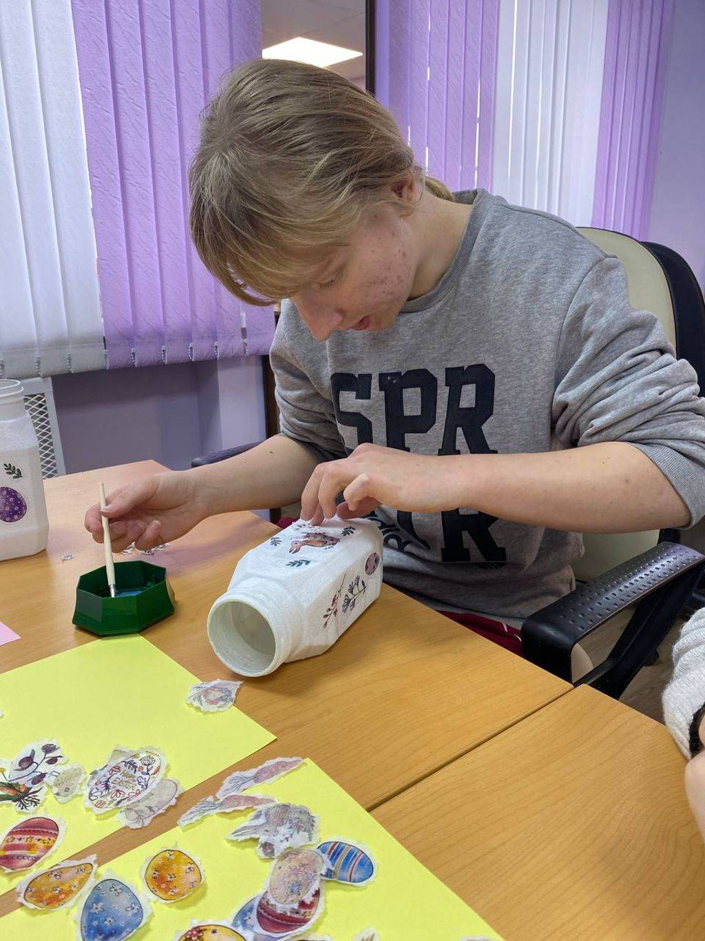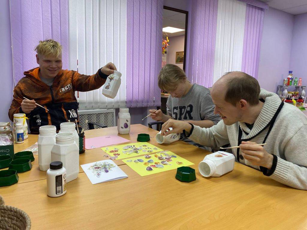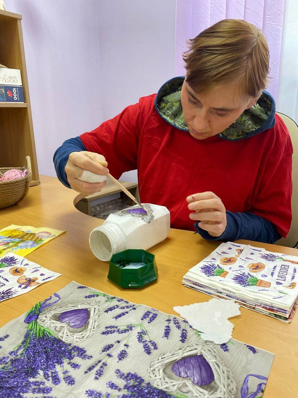 🍁На одном из занятий с воспитателем ребята из отделения сопровождаемого проживания работали в технике декупаж.