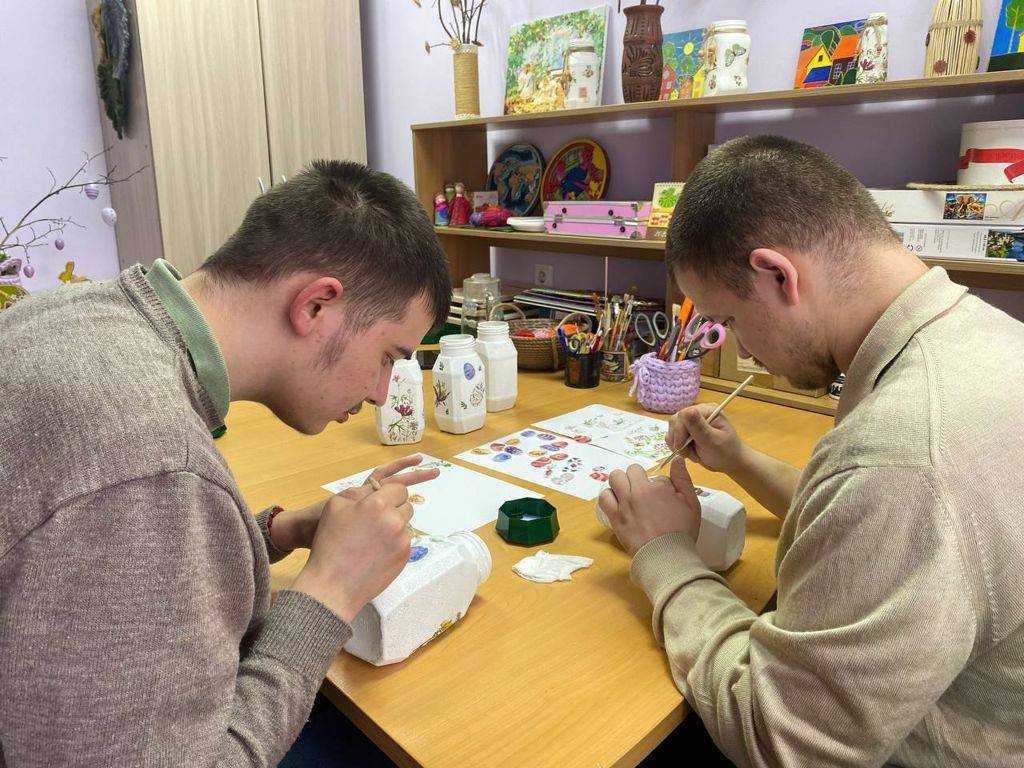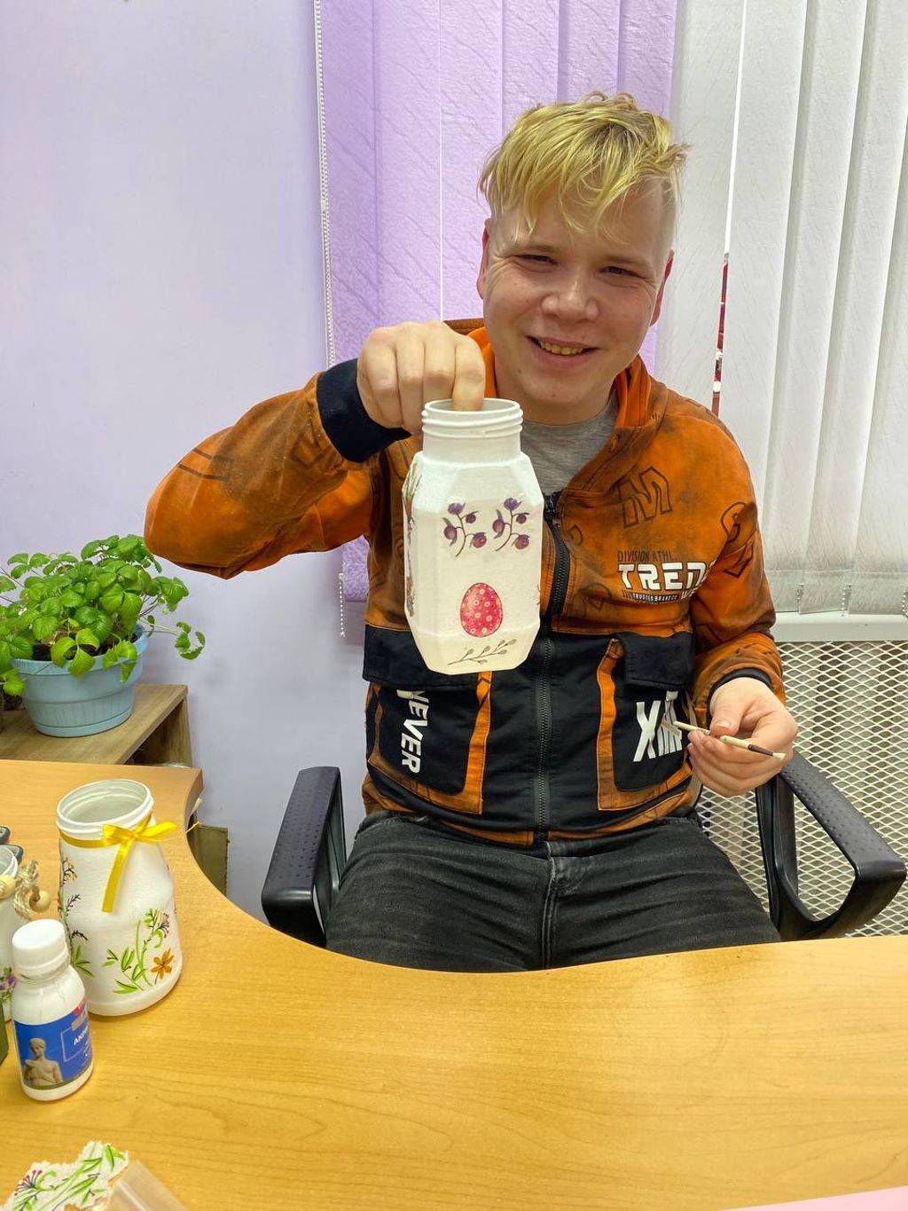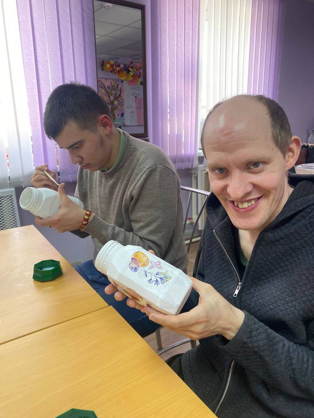 🍁На одном из занятий с воспитателем ребята из отделения сопровождаемого проживания работали в технике декупаж.