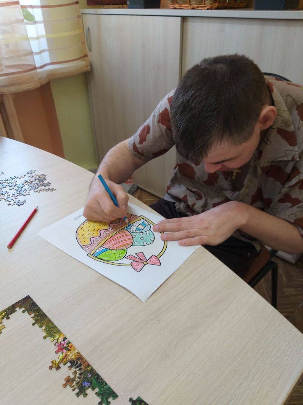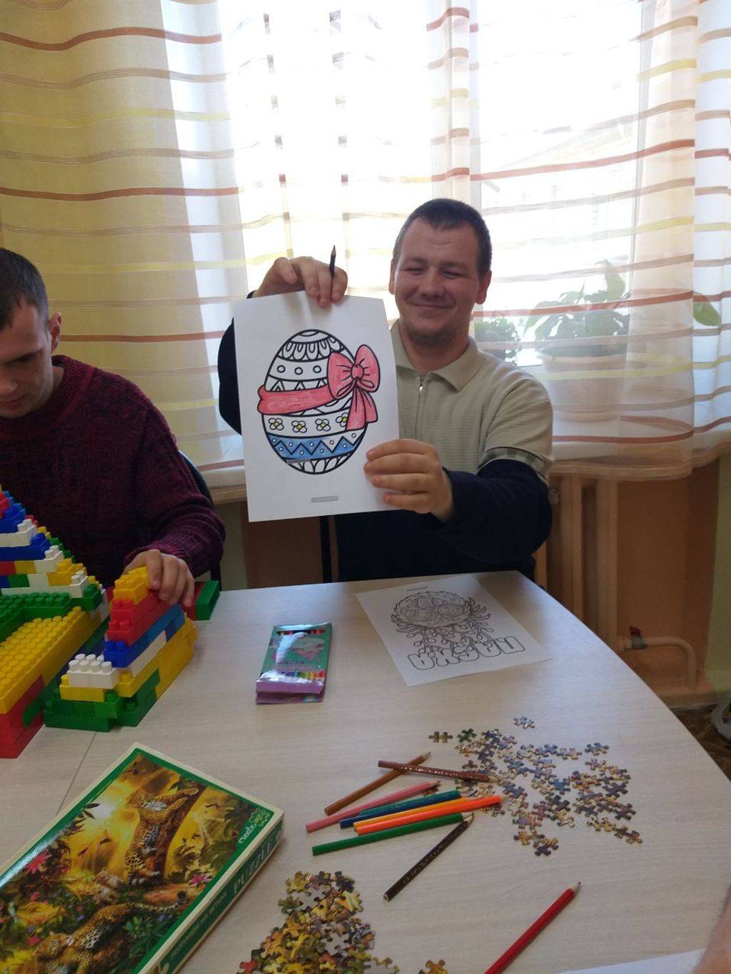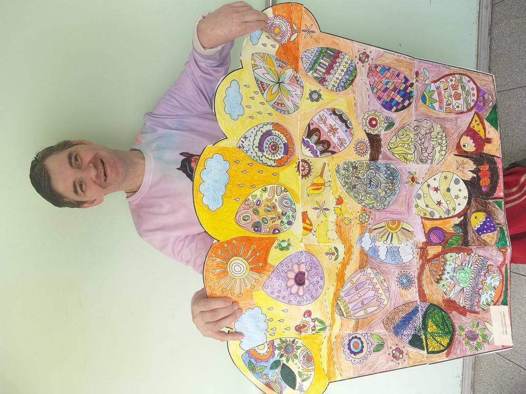 А Сергей Бобров выбрал не такое лёгкое задание. Последние пару недель он в одиночку проделал большую работу и раскрасил большую стенгазету к приближающейся Пасхе.