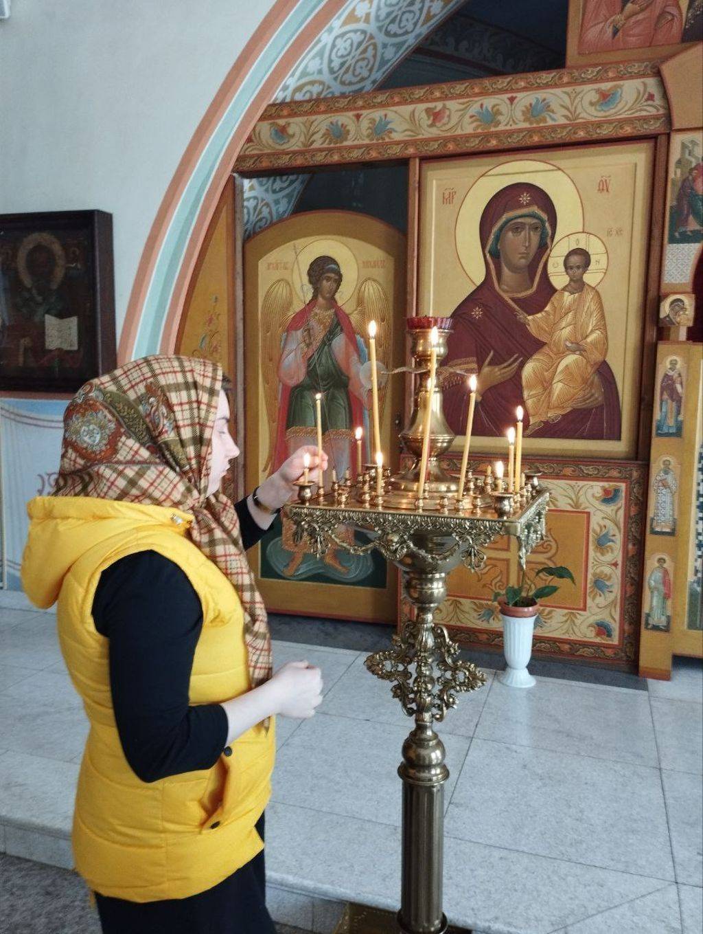 Отец Пётр рассказал насколько важен праздник, на что пошёл Иисус ради человечества. После проповеди окропил святой водой людей, чтобы смыть с них грехи и очистить душу, окропил еду.