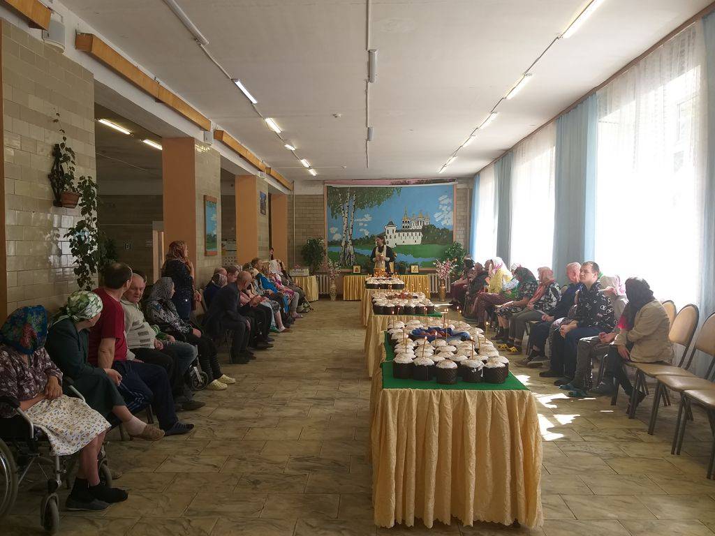 4 мая в Святую Субботу в ДСО приезжал отец Пётр из Тарусского собора Петра и Павла. Проживающие собрались в столовой послушать проповедь о Светлом празднике Пасхи и Воскресении Христовом.