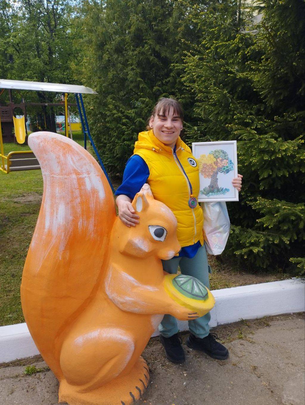 Собрались во дворе, на свежем воздухе. Ребят поблагодарили за участие и вручили небольшие символические гостинцы. Каждому учреждению вручили благодарственное письмо за участие в чемпионате и фестивале.
