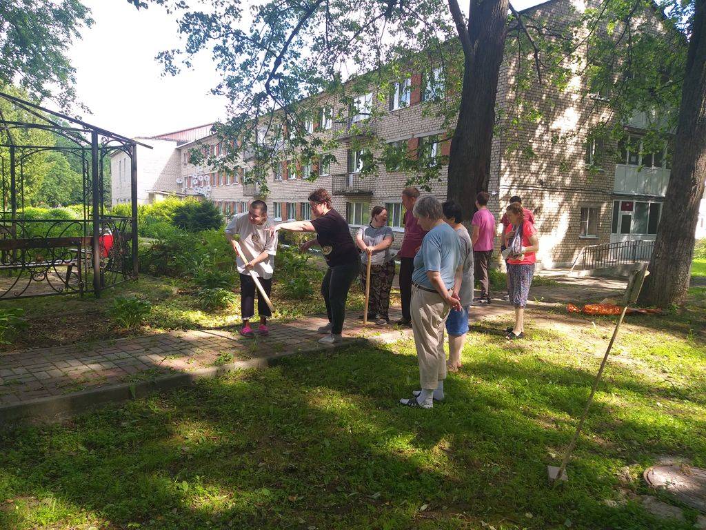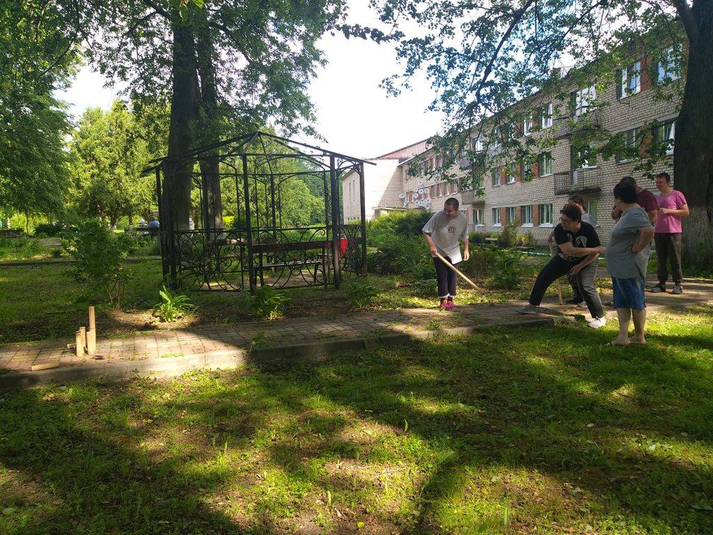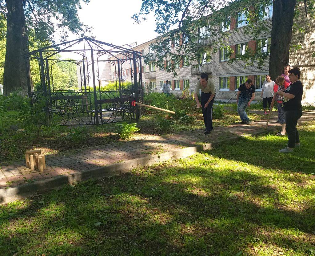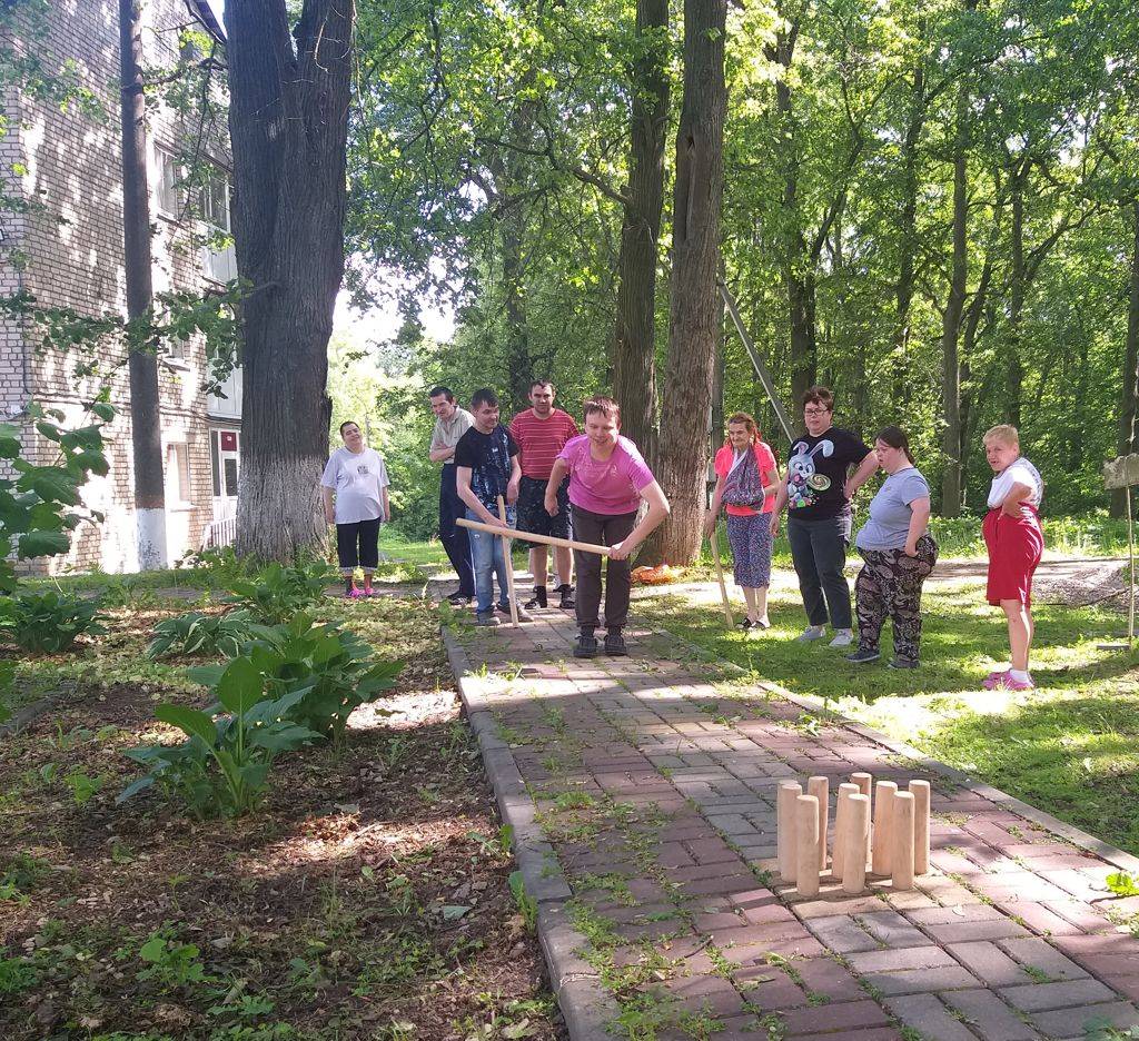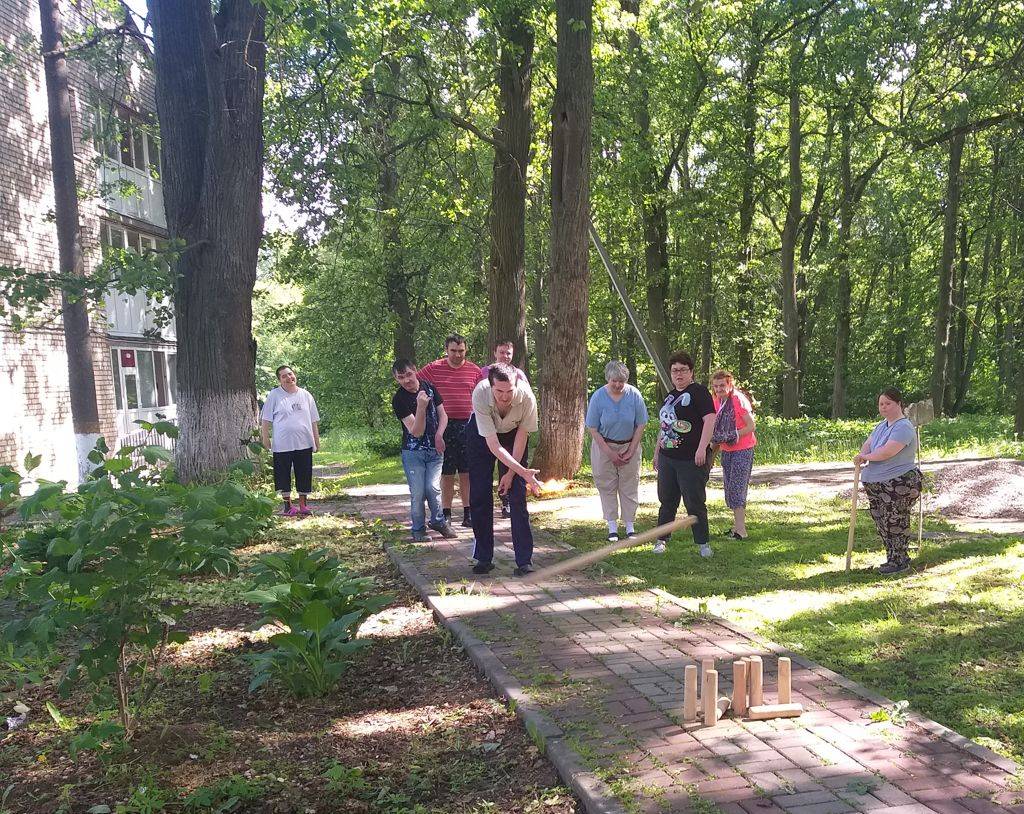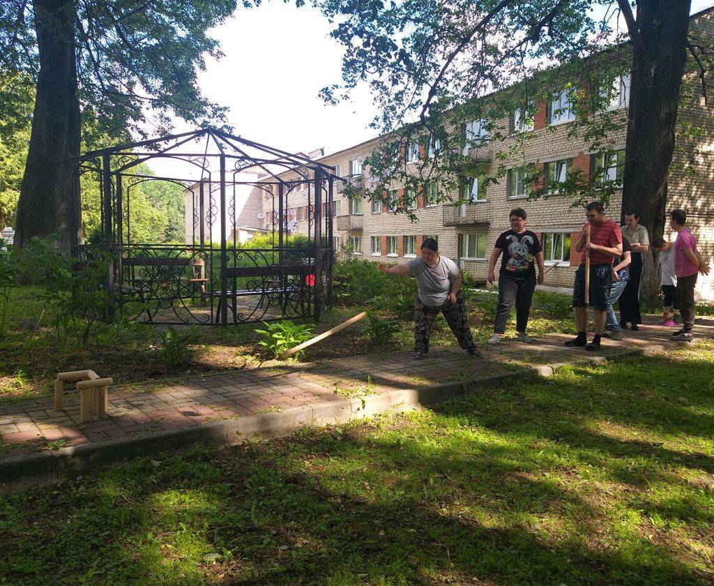 Воспитатель Екатерина Теммер попробовала с ребятами из психоневрологического отделения поиграть в новую для них игру «Городки».