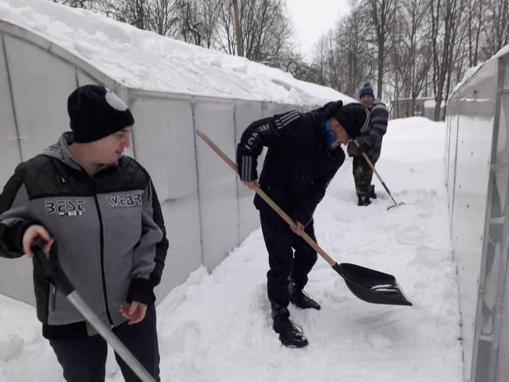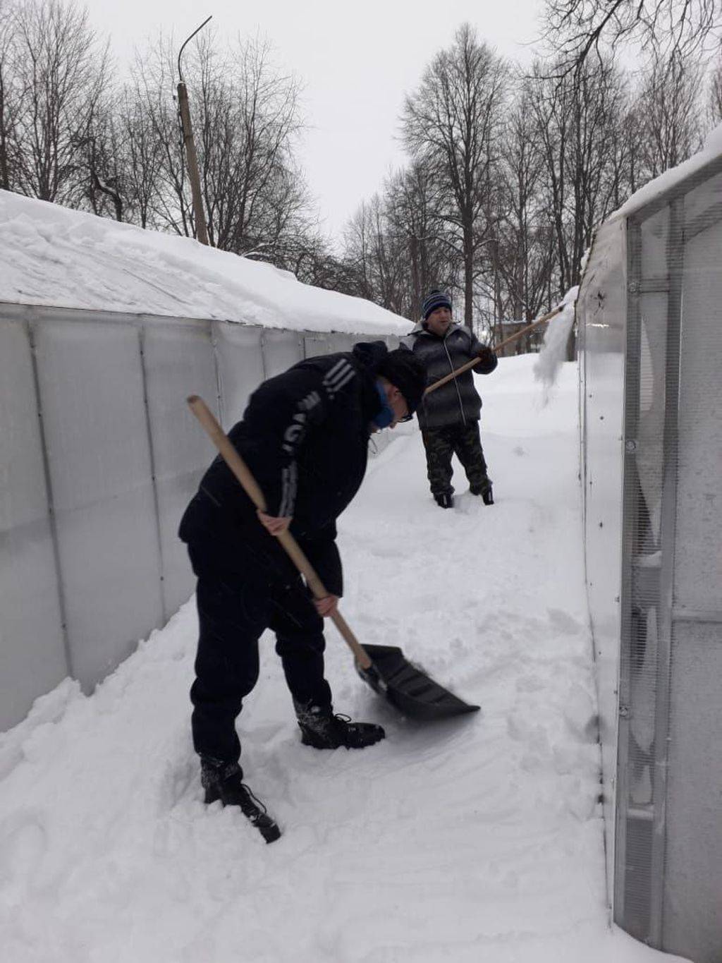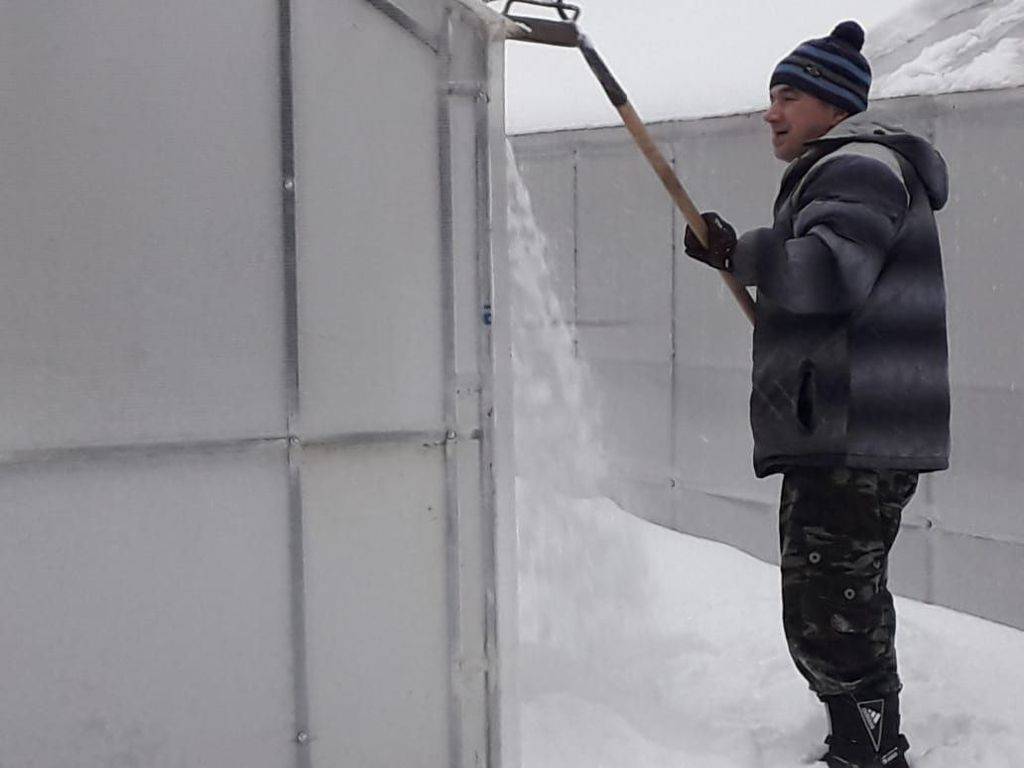 Не забываем мы и про теплицы, с которых во время снегопада регулярно убираем снег.