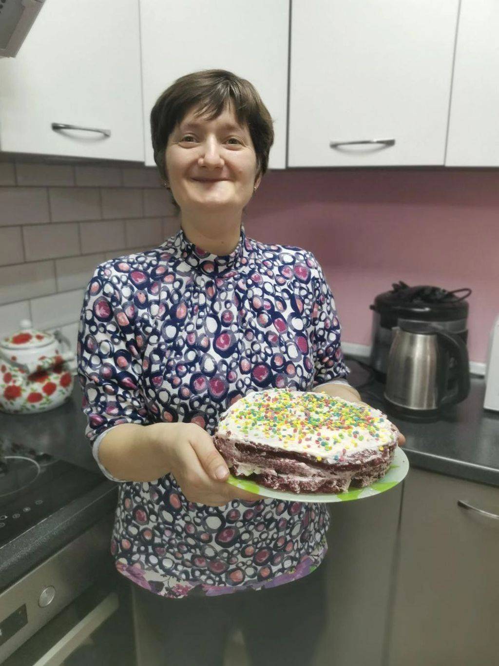Ребята из отделения сопровождаемого проживания любят готовить десерты своими руками. Пироги, запеканки, печенья, засахаренные фрукты и самый любимый десерт — блинный торт.