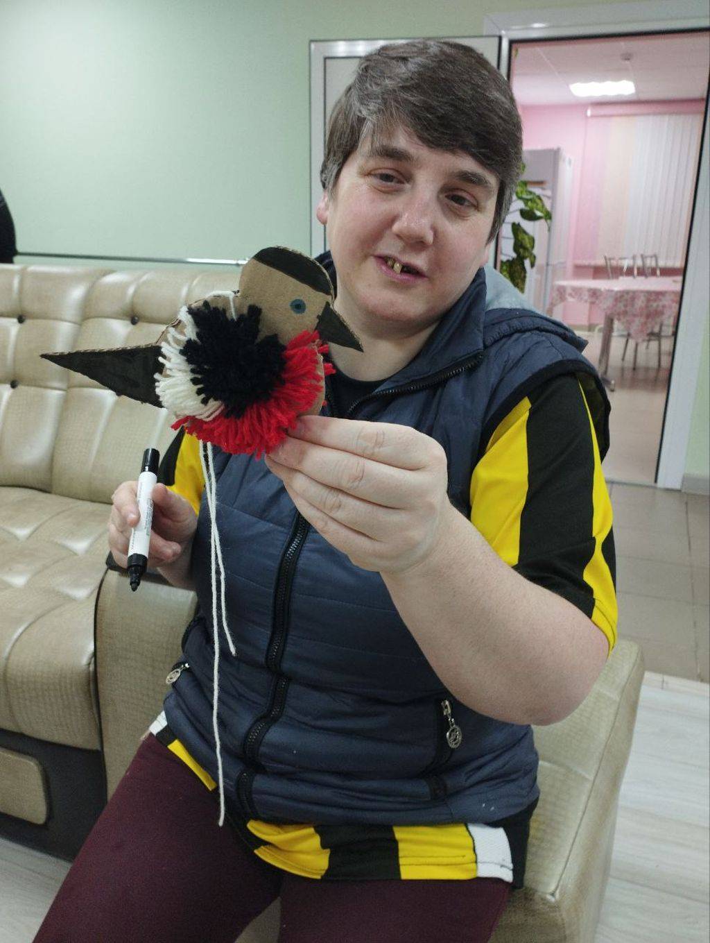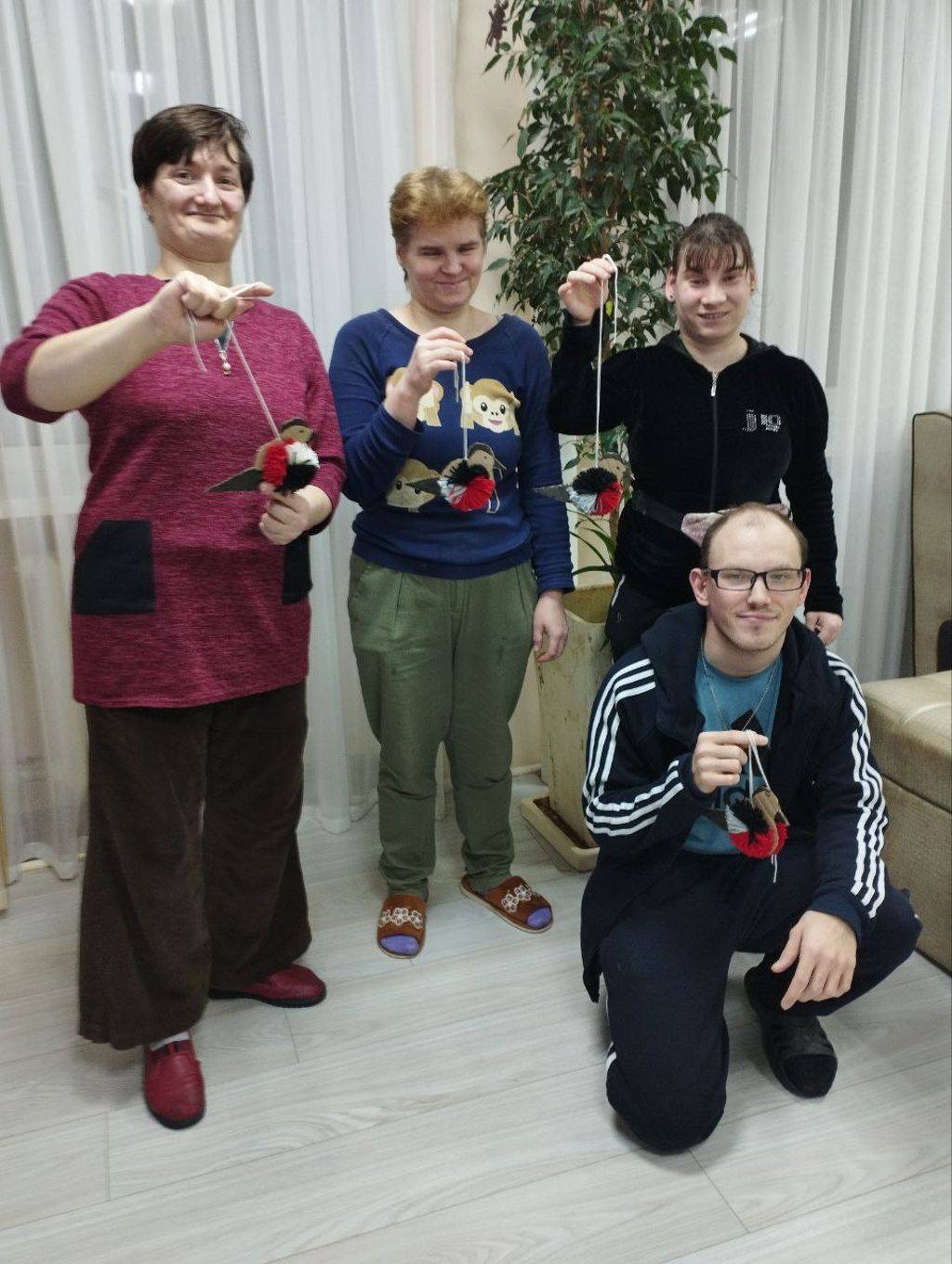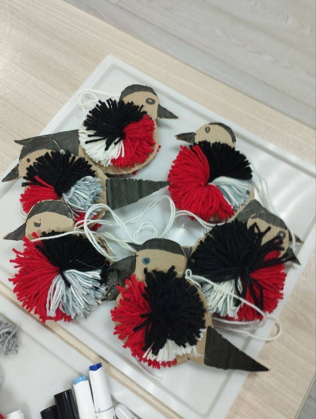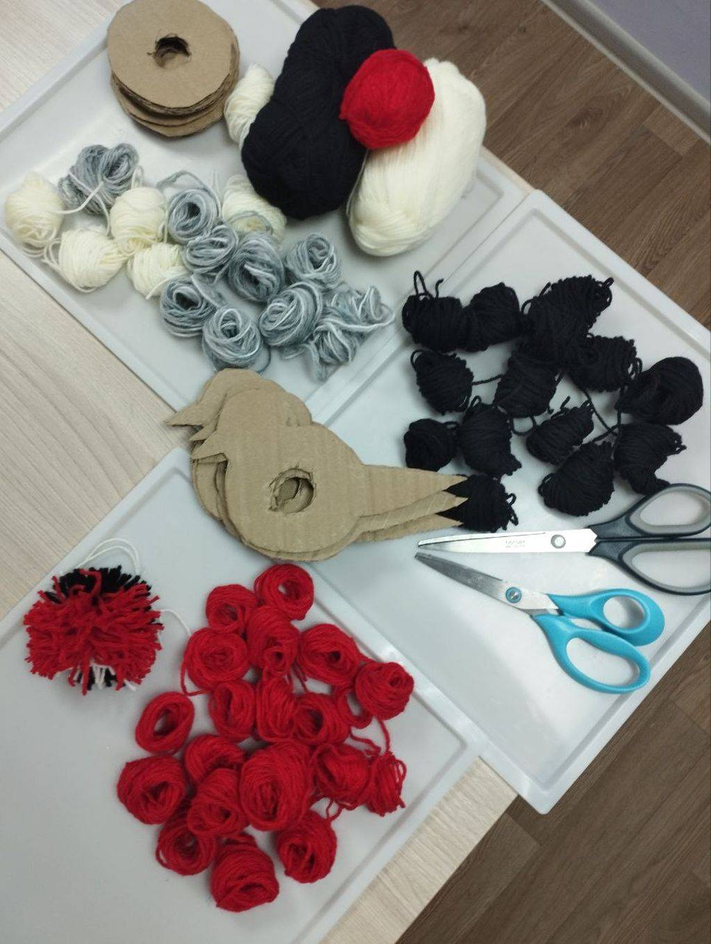 Идею сделать снегирей из картона и вязальных ниток ребята из отделения сопровождаемого проживания нашли в сети Интернет.