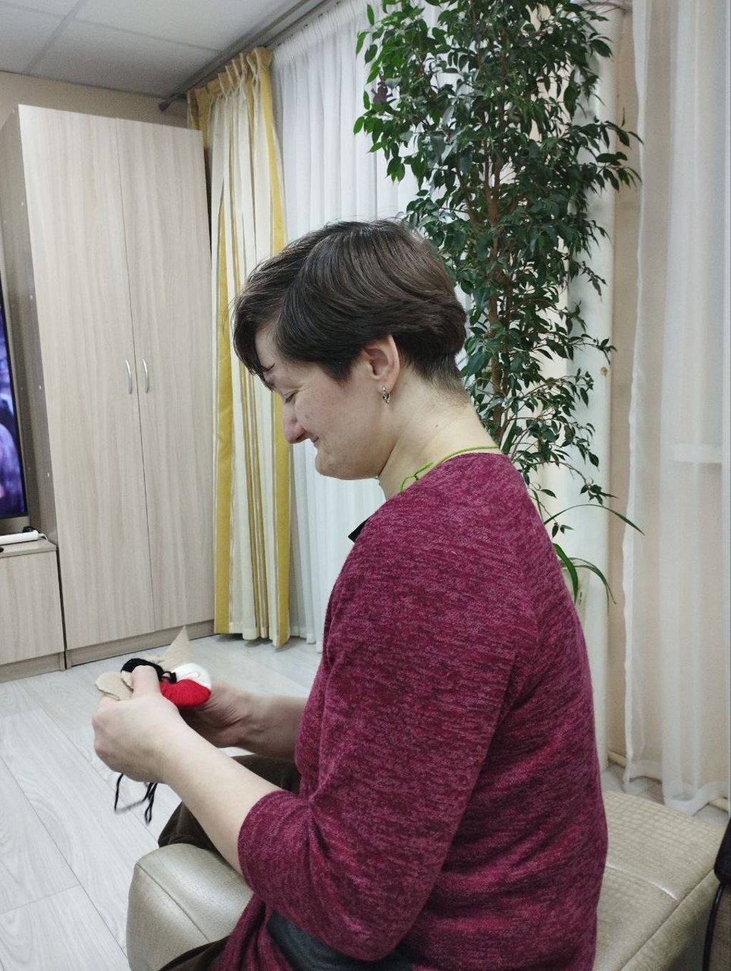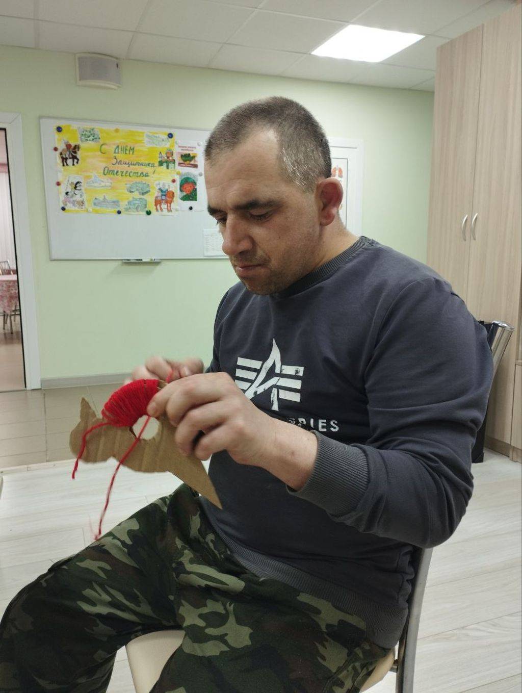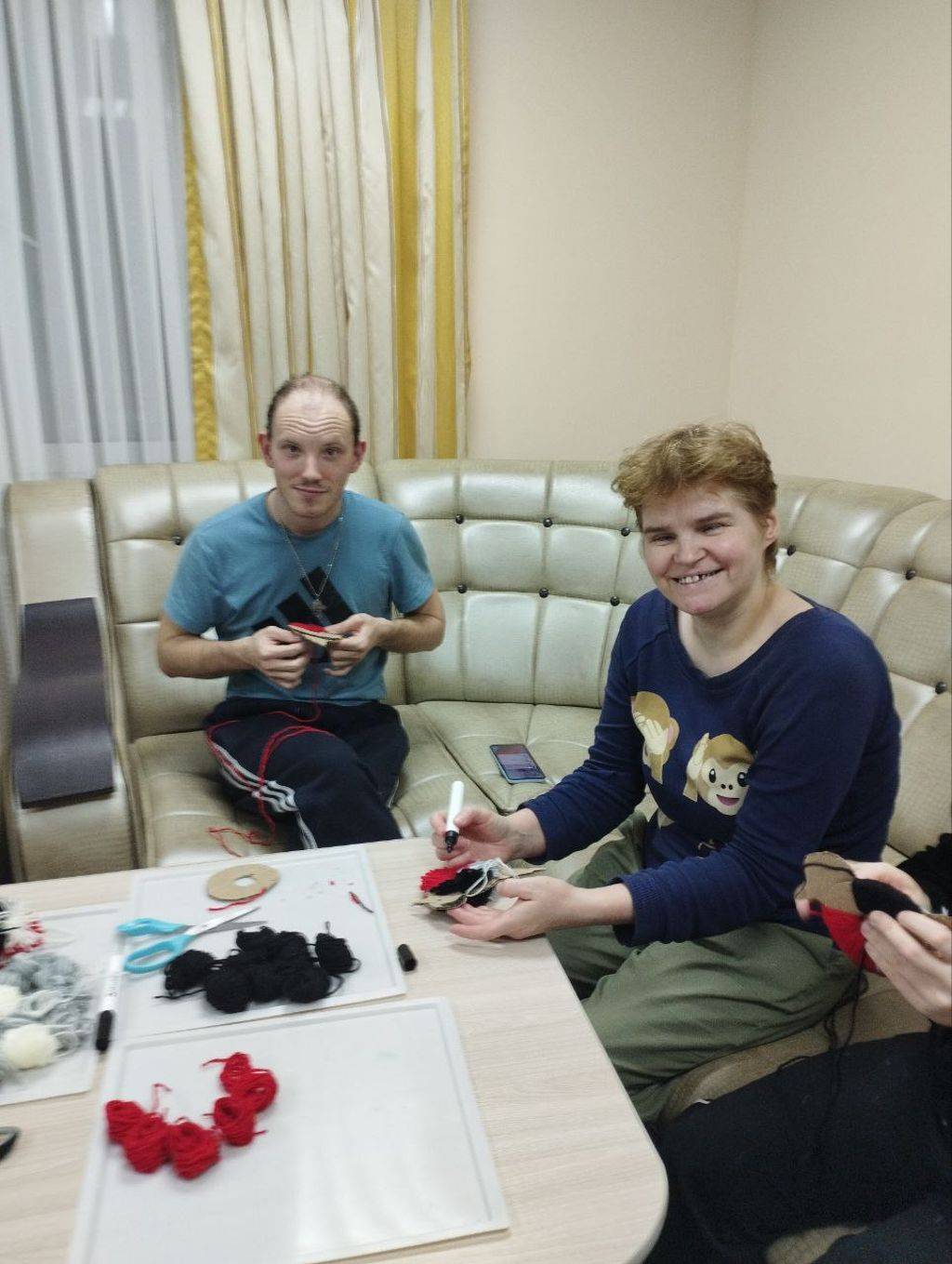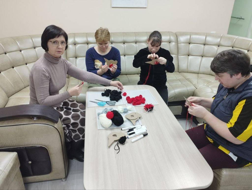 Идею сделать снегирей из картона и вязальных ниток ребята из отделения сопровождаемого проживания нашли в сети Интернет.